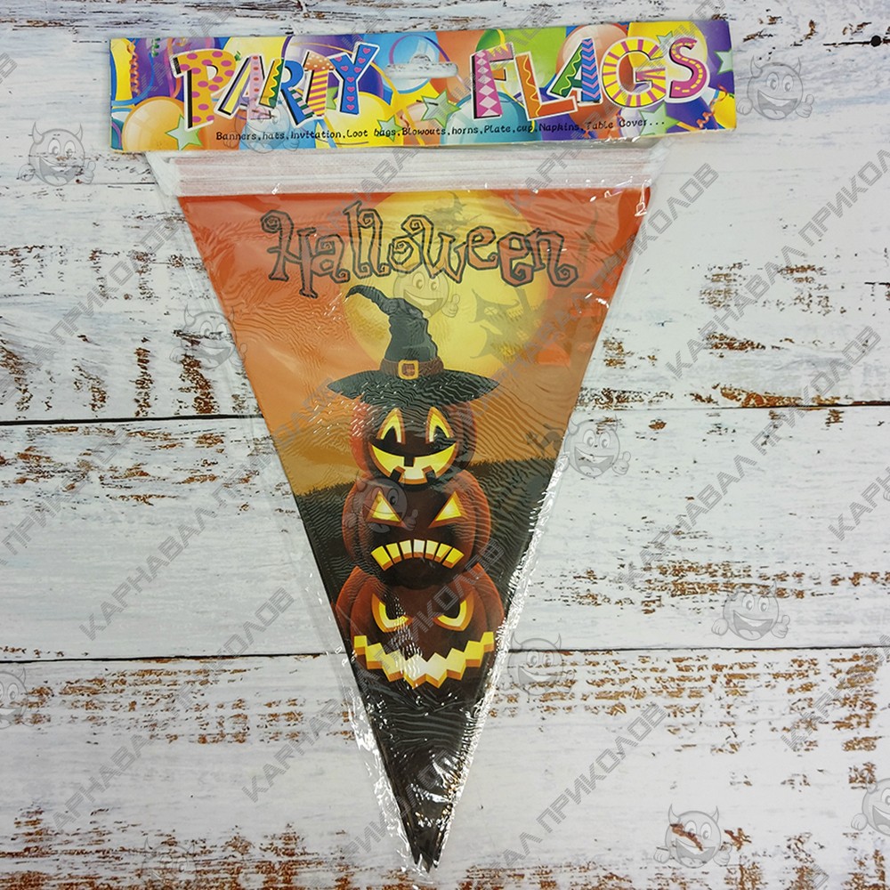 Гирлянда Хэллоуин флажки №21 - самый популярный и самый востребованный декор на Хэллоуин. Гирляндой можно украсить любую часть интерьера, и везде она будет смотреться гармонично! Классная бумажная гирлянда - склейка на Halloween. Отлично подойдет для украшения залов, пабов, ресторанов и ночных клубов на Хэллоуин. Гирлянда из флажков изготавливается методом цифровой сублимационной печати. Яркость красок и качество печати великолепно и неизменно со временем. В качестве крепления используется капроновый шнур. Такое украшение наверняка запомнится Вашим гостям и добавит ярких красок в Ваш интерьер. Оптовый поставщик №1 в Украине товаров для праздника Карнавал Приколов, предлагает широкий ассортимент декора для праздников и вечеринок.