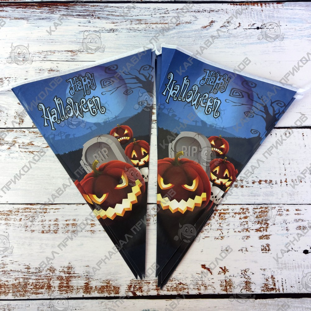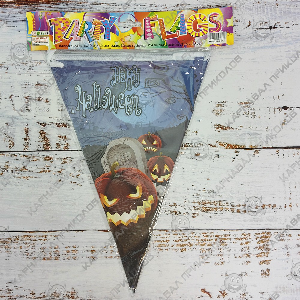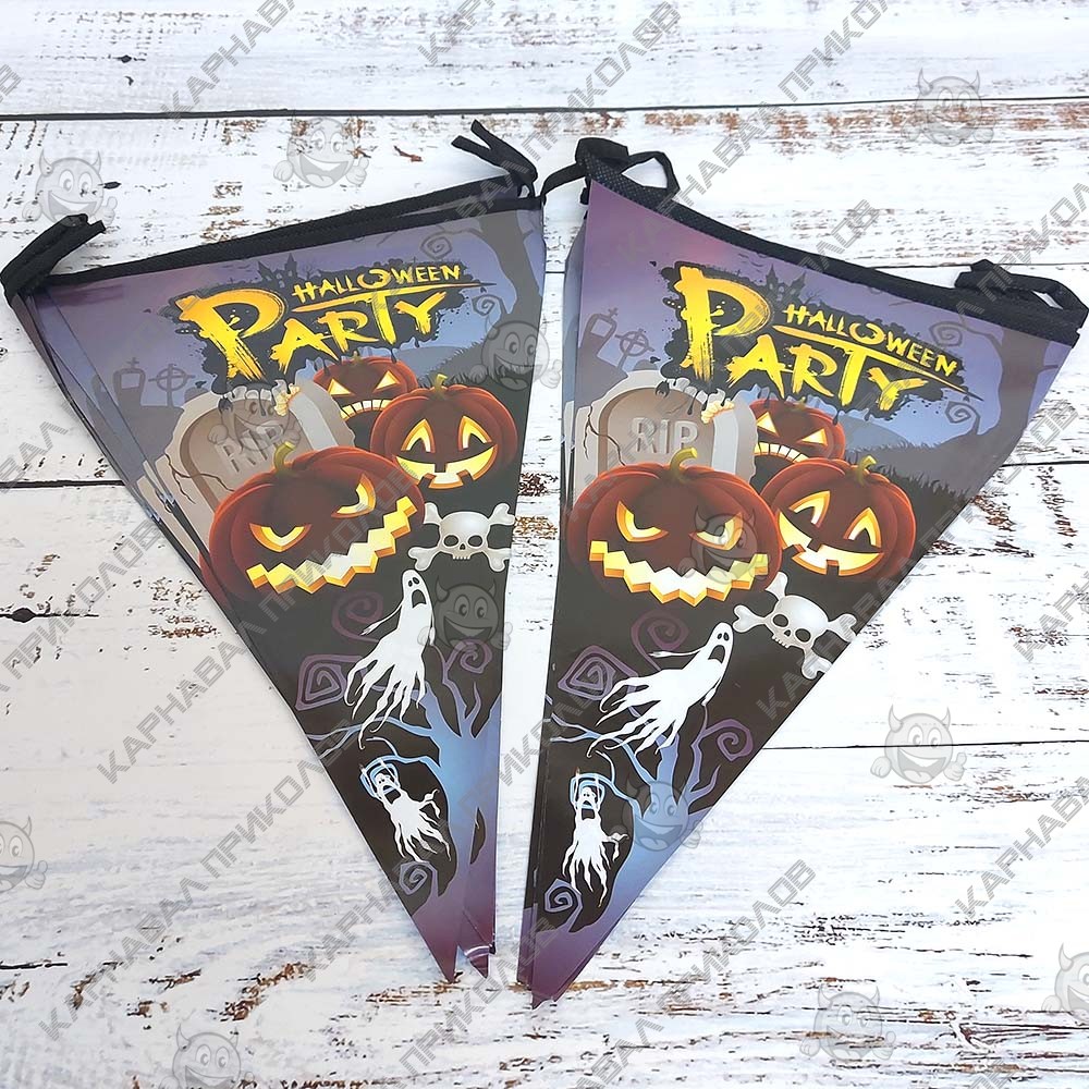 Гирлянда Хэллоуин флажки №23 - самый популярный и самый востребованный декор на Хэллоуин. Гирляндой можно украсить любую часть интерьера, и везде она будет смотреться гармонично! Классная бумажная гирлянда - склейка на Halloween. Отлично подойдет для украшения залов, пабов, ресторанов и ночных клубов на Хэллоуин. Гирлянда из флажков изготавливается методом цифровой сублимационной печати. Яркость красок и качество печати великолепно и неизменно со временем. В качестве крепления используется капроновый шнур. Такое украшение наверняка запомнится Вашим гостям и добавит ярких красок в Ваш интерьер. Оптовый поставщик №1 в Украине товаров для праздника Карнавал Приколов, предлагает широкий ассортимент декора для праздников и вечеринок.