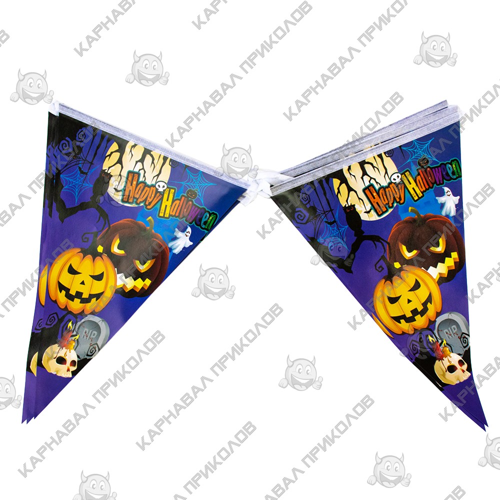 Гирлянда Хэллоуин флажки №29 - самый популярный и самый востребованный декор на Хэллоуин. Гирляндой можно украсить любую часть интерьера, и везде она будет смотреться гармонично! Классная бумажная гирлянда - склейка на Halloween. Отлично подойдет для украшения залов, пабов, ресторанов и ночных клубов на Хэллоуин. Гирлянда из флажков изготавливается методом цифровой сублимационной печати. Яркость красок и качество печати великолепно и неизменно со временем. В качестве крепления используется капроновый шнур. Такое украшение наверняка запомнится Вашим гостям и добавит ярких красок в Ваш интерьер. Оптовый поставщик №1 в Украине товаров для праздника Карнавал Приколов, предлагает широкий ассортимент декора для праздников и вечеринок.