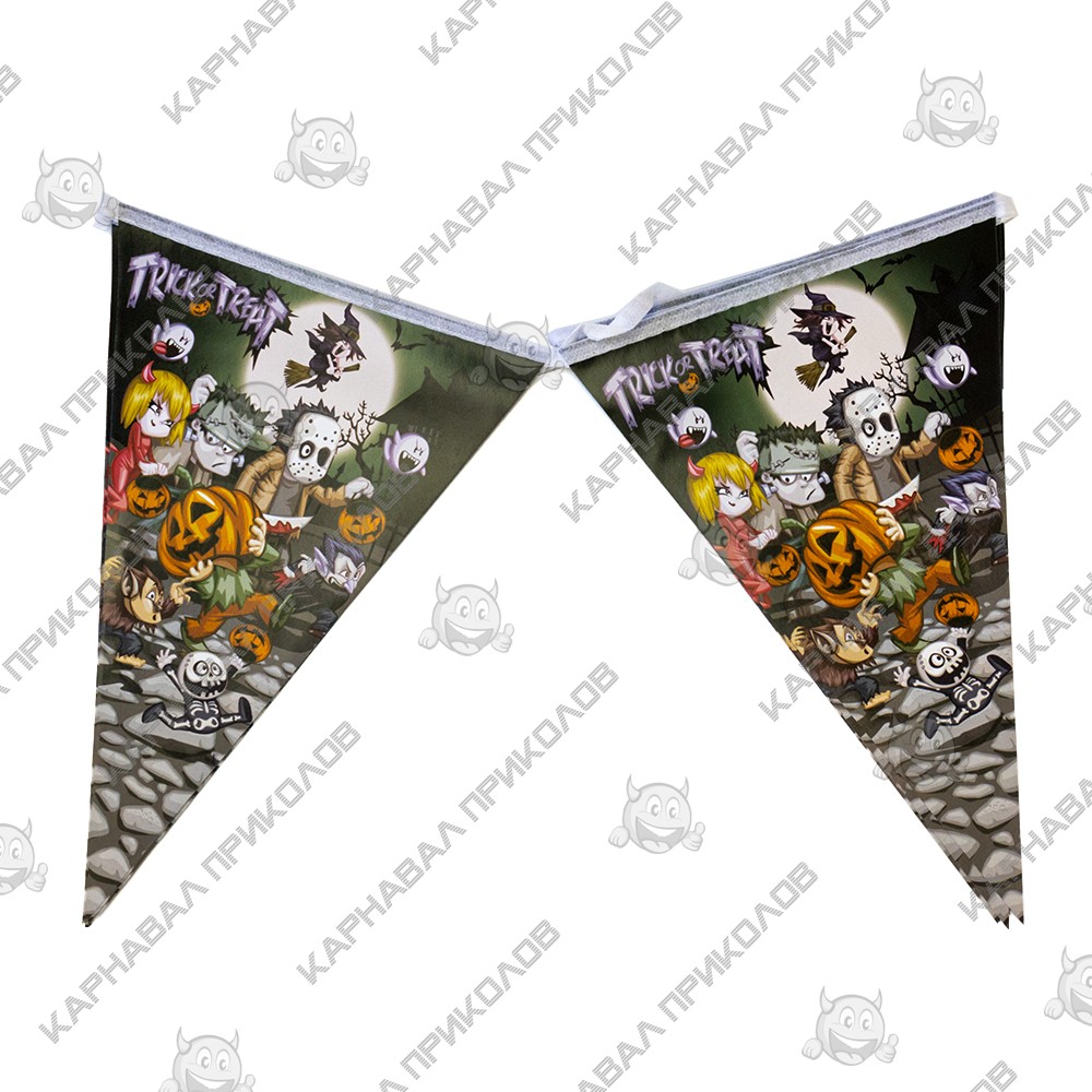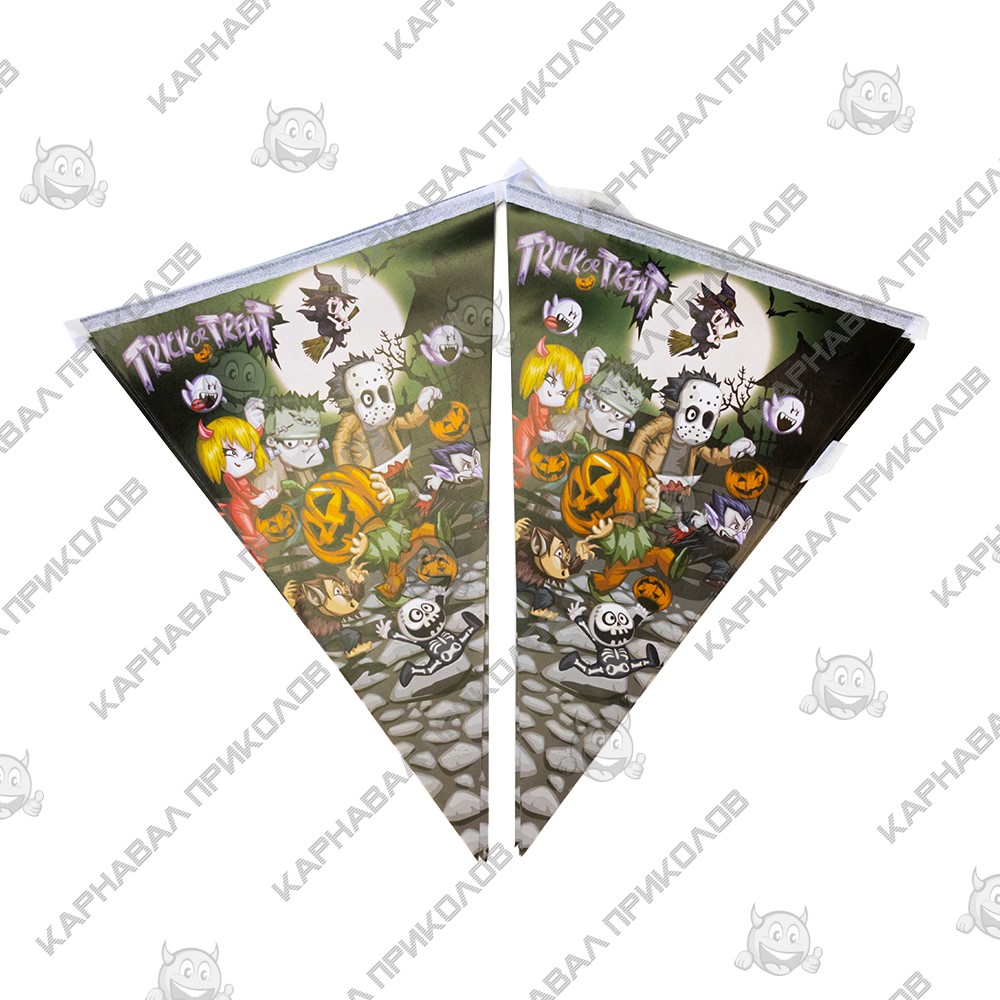 Гирлянда Хэллоуин флажки №33 - самый популярный и самый востребованный декор на Хэллоуин. Гирляндой можно украсить любую часть интерьера, и везде она будет смотреться гармонично! Классная бумажная гирлянда - склейка на Halloween. Отлично подойдет для украшения залов, пабов, ресторанов и ночных клубов на Хэллоуин. Гирлянда из флажков изготавливается методом цифровой сублимационной печати. Яркость красок и качество печати великолепно и неизменно со временем. В качестве крепления используется капроновый шнур. Такое украшение наверняка запомнится Вашим гостям и добавит ярких красок в Ваш интерьер. Оптовый поставщик №1 в Украине товаров для праздника Карнавал Приколов, предлагает широкий ассортимент декора для праздников и вечеринок.