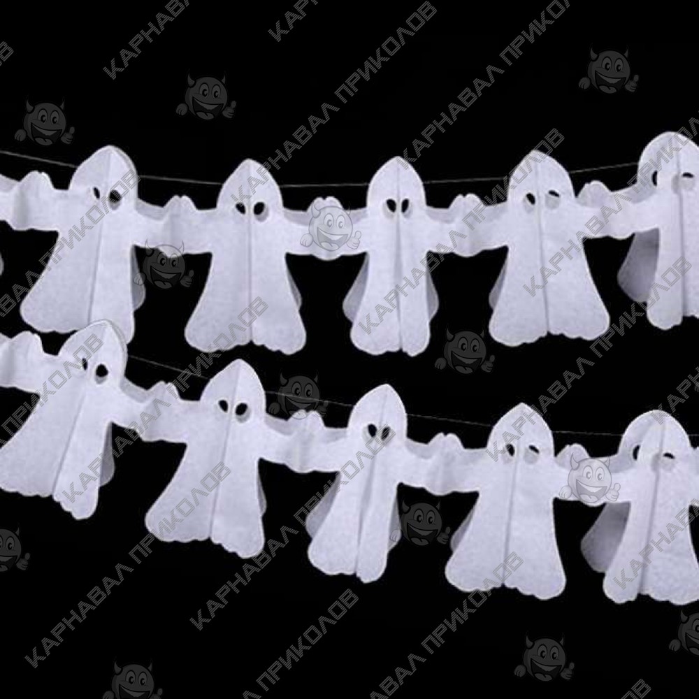 Гирлянда - самый популярный и самый востребованный декор на Хэллоуин. Гирляндой можно украсить любую часть интерьера, и везде она будет смотреться гармонично! Классная бумажная гирлянда - склейка на Halloween. Длина гирлянды: 3 метра. Отлично подойдет для украшения залов, пабов, ресторанов и ночных клубов на Хэллоуин. Такое украшение наверняка запомнится Вашим гостям и добавит ярких красок в Ваш интерьер.