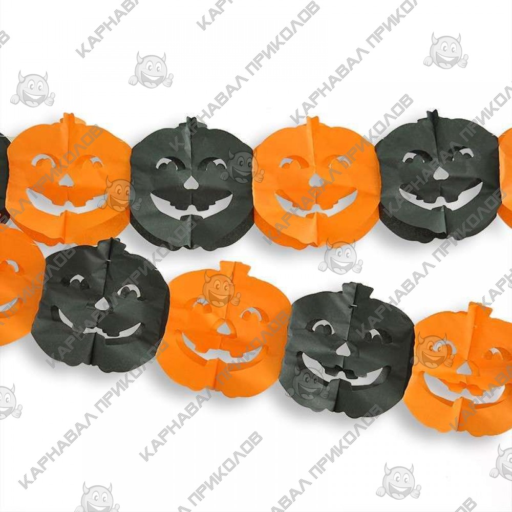 Гирлянда - самый популярный и самый востребованный декор на Хэллоуин. Гирляндой можно украсить любую часть интерьера, и везде она будет смотреться гармонично! Классная бумажная гирлянда - склейка на Halloween. Длина гирлянды: 3 метра. Отлично подойдет для украшения залов, пабов, ресторанов и ночных клубов на Хэллоуин. Такое украшение наверняка запомнится Вашим гостям и добавит ярких красок в Ваш интерьер.