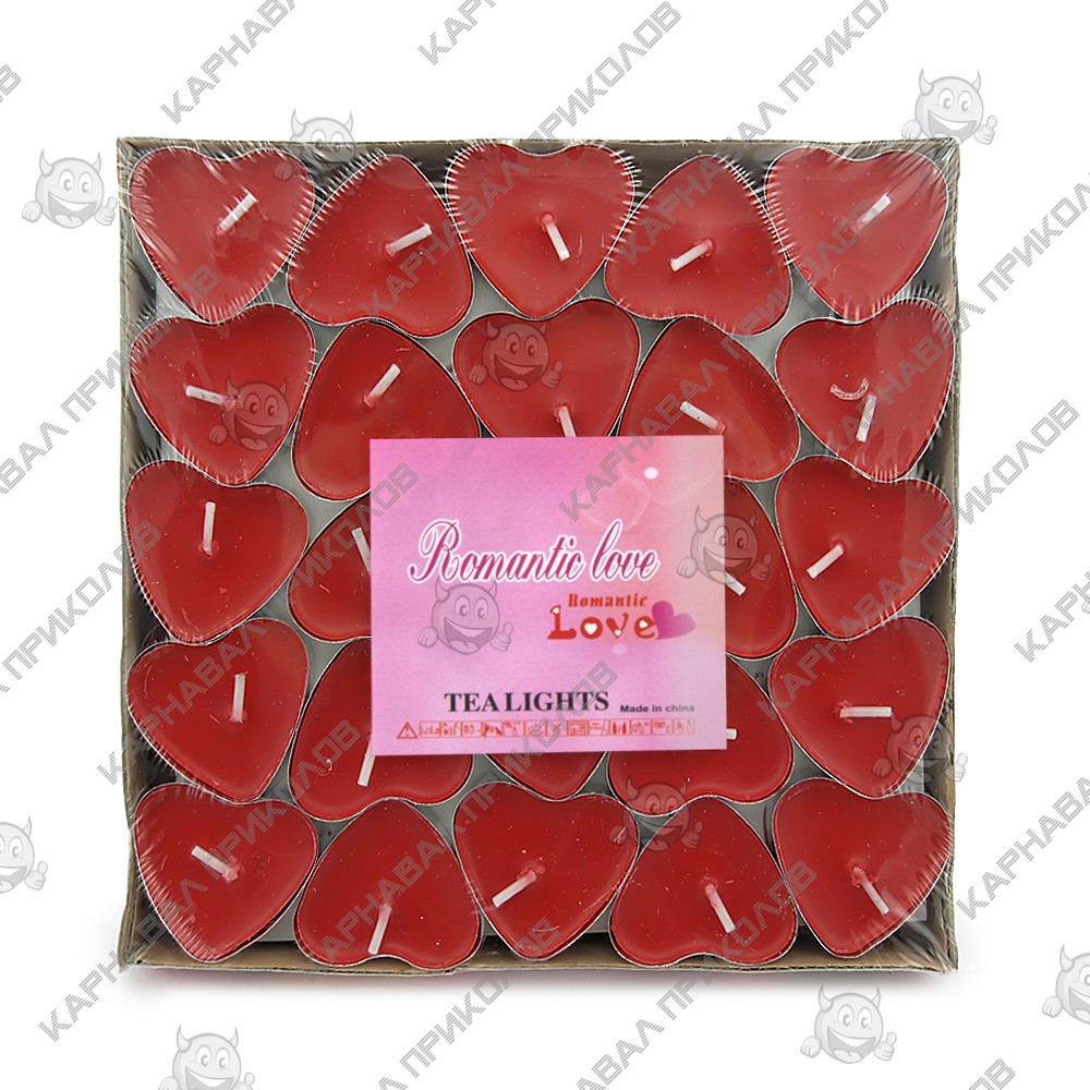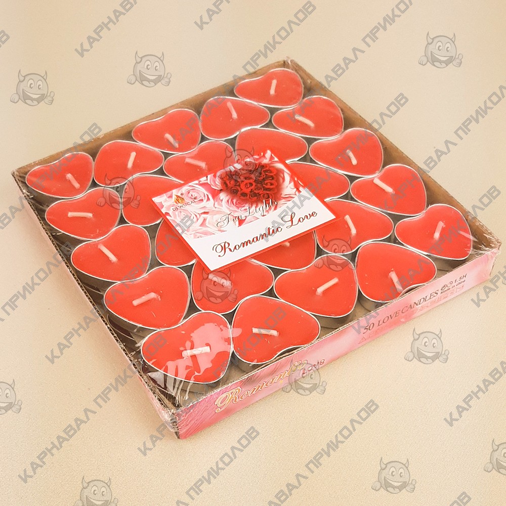 Как легко сделать романтическую атмосферу в доме? Правильно, темнота и свечи. Романтические свечи создают интимный свет, идеальный чтобы провести время со своим близким человеком. Свечи чайные романтические прекрасная возможность сознаться второй половинке в своих чувствах. Свечи в форме сердец отличный подарок друзьям и знакомым. Также можно всегда украсить праздник всех влюбленных или небольшую вечеринку. Свечи изготовлены из парафина залитого в алюминиевый корпус из-за этого их называют свечи-таблетки или чайные свечи. Используются свечи Сердце в аромалампах, декоративных светильниках, украшении интерьера и как плавающие свечи. Чайные плавающие свечи отличаются самой высокой экономичностью, так как парафин не может покинуть зону плавления в алюминиевом корпусе и сгорает до конца. В упаковке 50 шт.