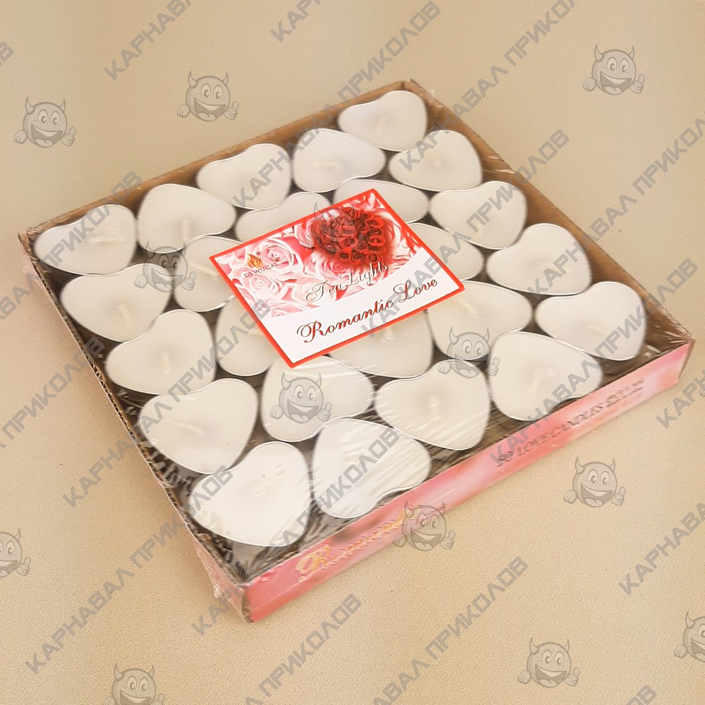 Как легко сделать романтическую атмосферу в доме? Правильно, темнота и свечи. Романтические свечи создают интимный свет, идеальный чтобы провести время со своим близким человеком. Свечи чайные романтические прекрасная возможность сознаться второй половинке в своих чувствах. Свечи в форме сердец отличный подарок друзьям и знакомым. Также можно всегда украсить праздник всех влюбленных или небольшую вечеринку. Свечи изготовлены из парафина залитого в алюминиевый корпус из-за этого их называют свечи-таблетки или чайные свечи. Используются свечи Сердце в аромалампах, декоративных светильниках, украшении интерьера и как плавающие свечи. Чайные плавающие свечи отличаются самой высокой экономичностью, так как парафин не может покинуть зону плавления в алюминиевом корпусе и сгорает до конца. В упаковке 4 шт.