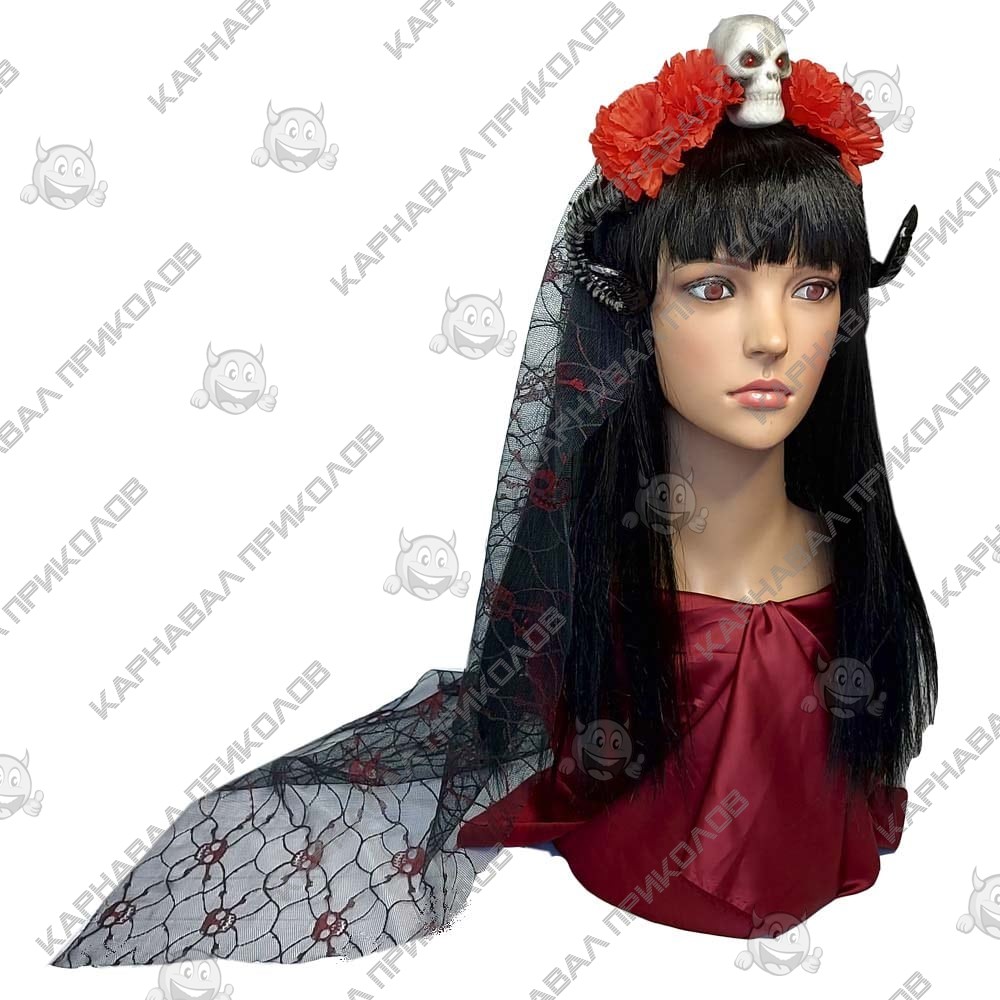 Украшение на голову с рогами Орайя 10240 легко можно создать оригинальный образ. Ободок с цветами и черепом в стиле Santa Muerte на Halloween, эффектно дополнит любой костюм нечести. Эффектное сочетание красных хризантем и белого черепа с маленькими золотыми рогами демона дополненое черной фатой с красными черепами из гипюра, создает загадочный образ Хельи Королевы Мертвых. Предлагаем Вам большой выбор украшений на голову для составления неповторимого образа на День Мертвых в интернет - магазине Карнавал Приколов. Купив Украшение на голову Хэллоуин Вы получаете не только качественный товар, а и 100% позитивных впечатлений от приобретения. Помимо аксессуара для волос, конечно, желателен оригинальный костюм, а также специфический гримм, который Вы можете подобрать на нашем сайте.