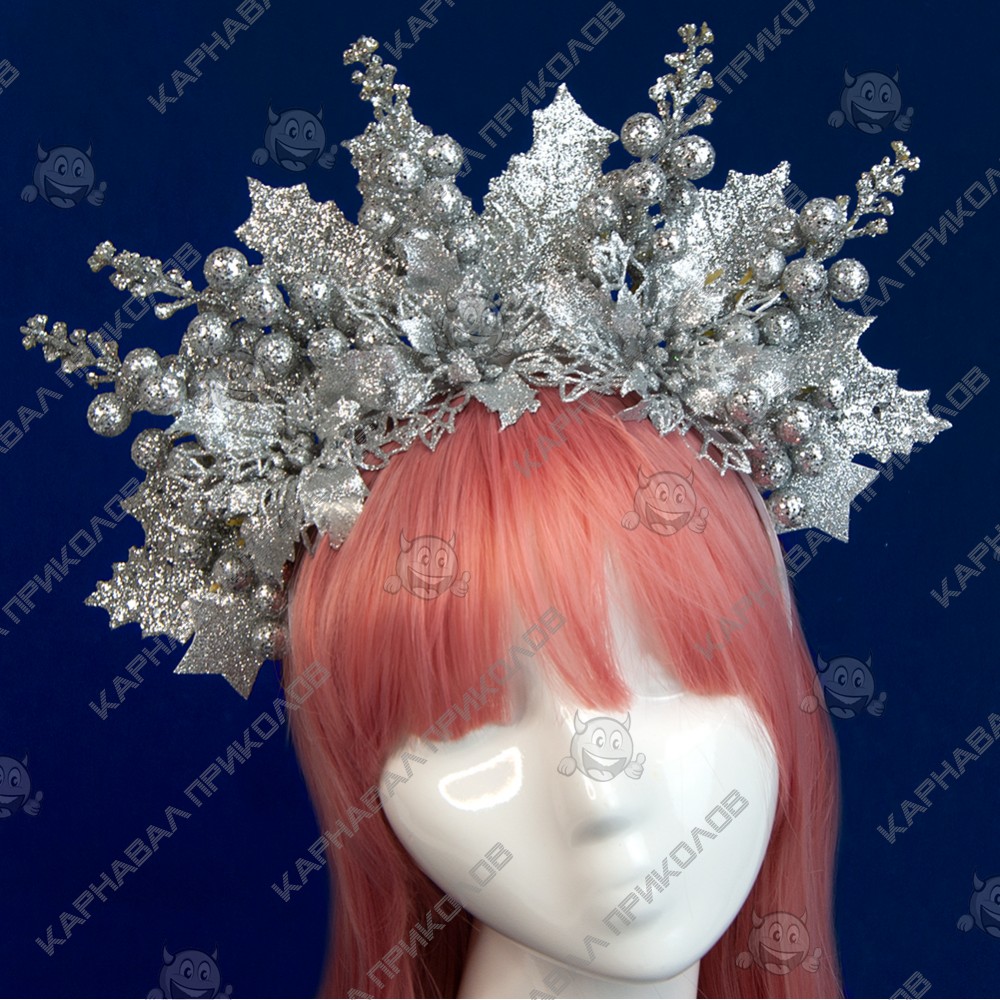 Интернет магазин Карнавал Приколов предлагает Вам купить оптом по-настоящему зимний и стильный обруч с веточками хвои и декоративными цветами, полностью ручной работы. Очаровательный рождественское украшение – нарядный аксессуар для фотосессии, корпоратива, создания уникального образа. Серебряные пуансетии с хвоей и новогодними патчами снежинками смотрятся просто великолепно и очень изысканно, а также создают праздничное настроение и идеально впишутся в новогодние торжества. Композиция надежно закреплена на пластиковом белом ободке универсального размера, украшенном белой репсовой лентой. Это новогоднее украшение на голову сделает Ваш наряд на любой вечеринке и будет изюминкой, как вишенка на торте.