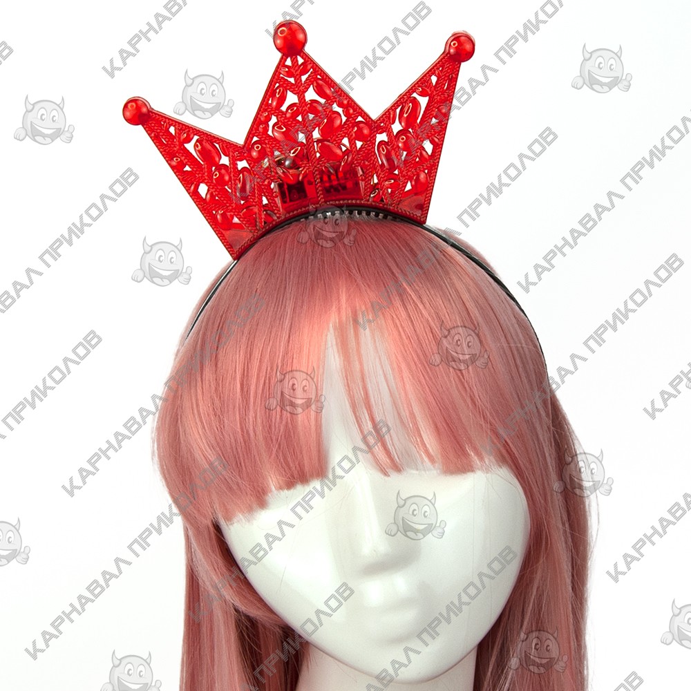 Аксессуар на обруче Корона светящаяся (красный) из названия понятно, что изделие не только эффектное по дизайну, но и по функционалу. Светящаяся корна на ободке не оставят равнодушным ее обладателя. Корона работает от батареек. Включение и выключение происходи при помощи кнопки на задней части аксессуара. Перед включением необходимо извлечь пластиковую заглушку, блокиратор включения и сместить кнопку вверх. Такой аксессуар станет отличным дополнением к веселому образу, который порадует, и детей, и взрослых. И не оставит обладателя такого оригинального обруча с глазами незамеченным даже в темноте.