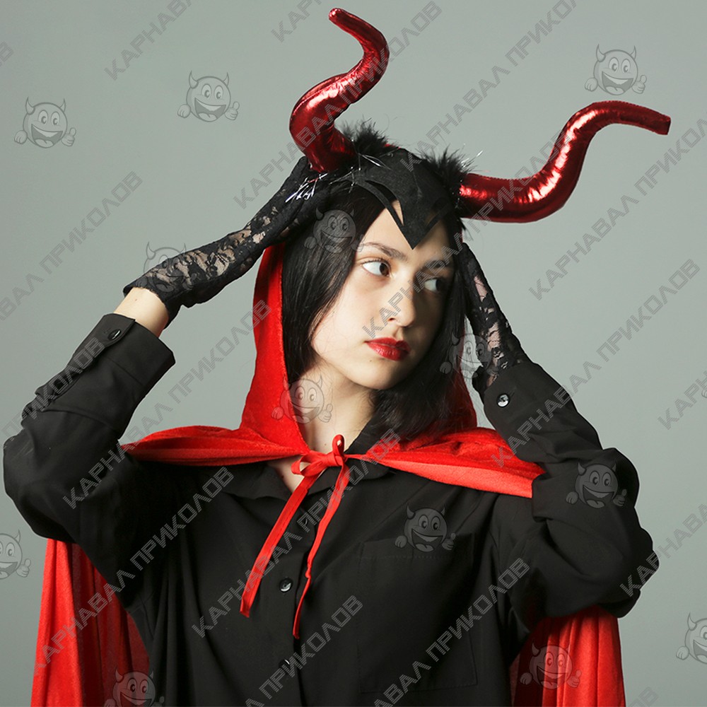 Если нужно перевоплотится в сказочный образ придуманный в студии диснея, можно это сделать имея в своем арсенале данный аксессуар. Роскошная сказочная Малефисента, встала на защиту своего мира и призвала на помощь темные силы. Вы сможете создать образ злодейки необыкновенной красоты. Образ Малефисенты является прекрасной основой при создании наряда для Хэллоуина или карнавала. Длинное в пол платье Малефисенты, перчатки, роскошный головной убор, посох, макияж в стиле вамп – и Вы будете героиней любой вечеринки.