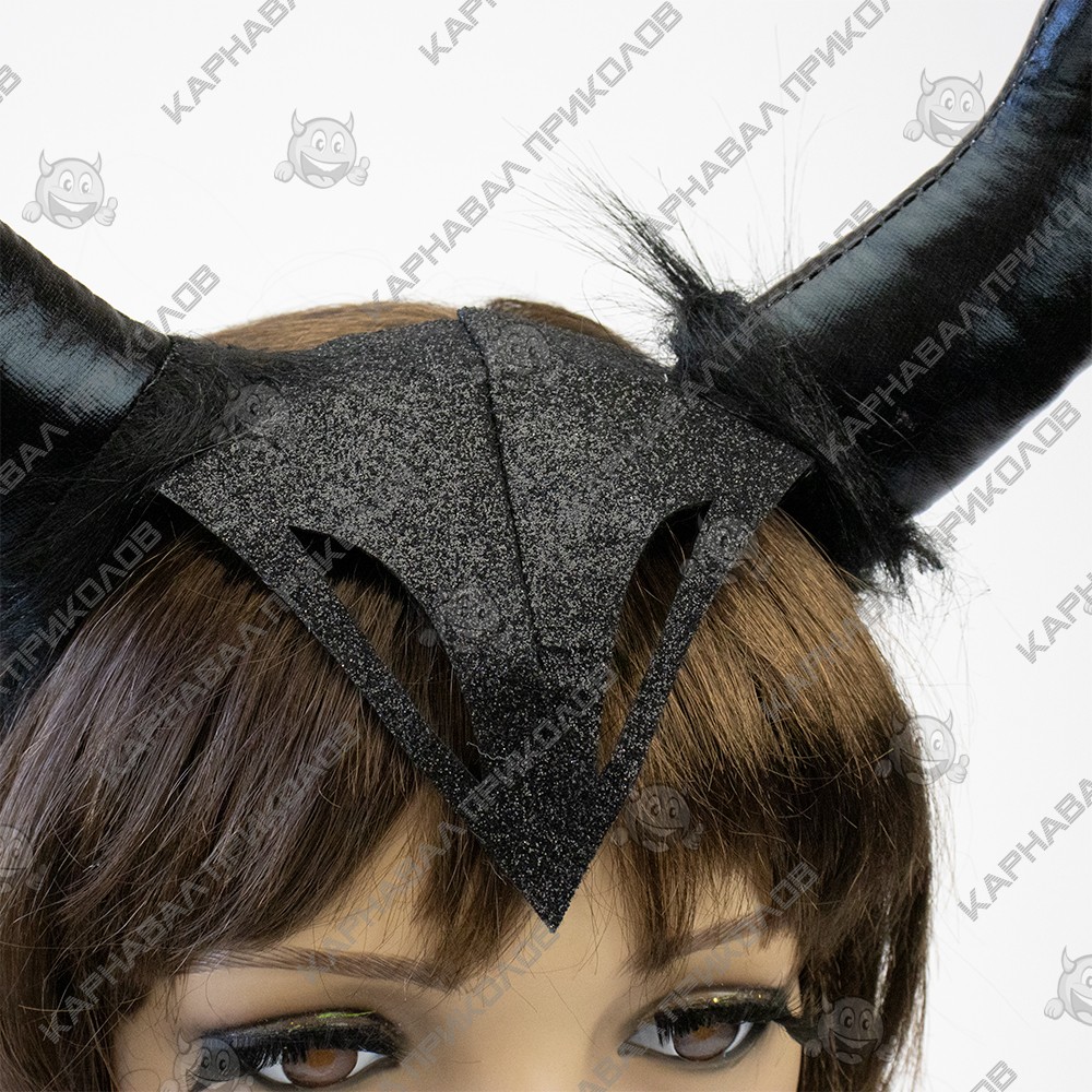 Если нужно перевоплотится в сказочный образ придуманный в студии диснея, можно это сделать имея в своем арсенале данный аксессуар. Роскошная сказочная Малефисента, встала на защиту своего мира и призвала на помощь темные силы. Вы сможете создать образ злодейки необыкновенной красоты. Образ Малефисенты является прекрасной основой при создании наряда для Хэллоуина или карнавала. Длинное в пол платье Малефисенты, перчатки, роскошный головной убор, посох, макияж в стиле вамп – и Вы будете героиней любой вечеринки.
