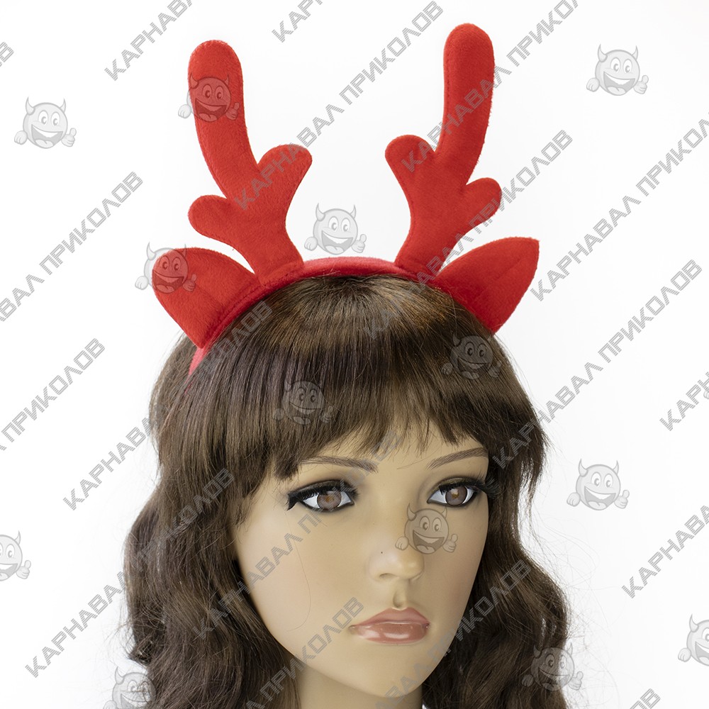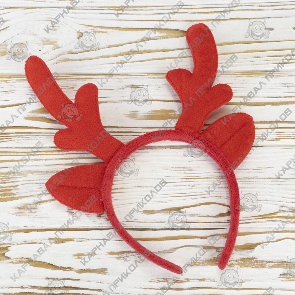 Рога Оленя на обруче рождественские велюровые (красные)