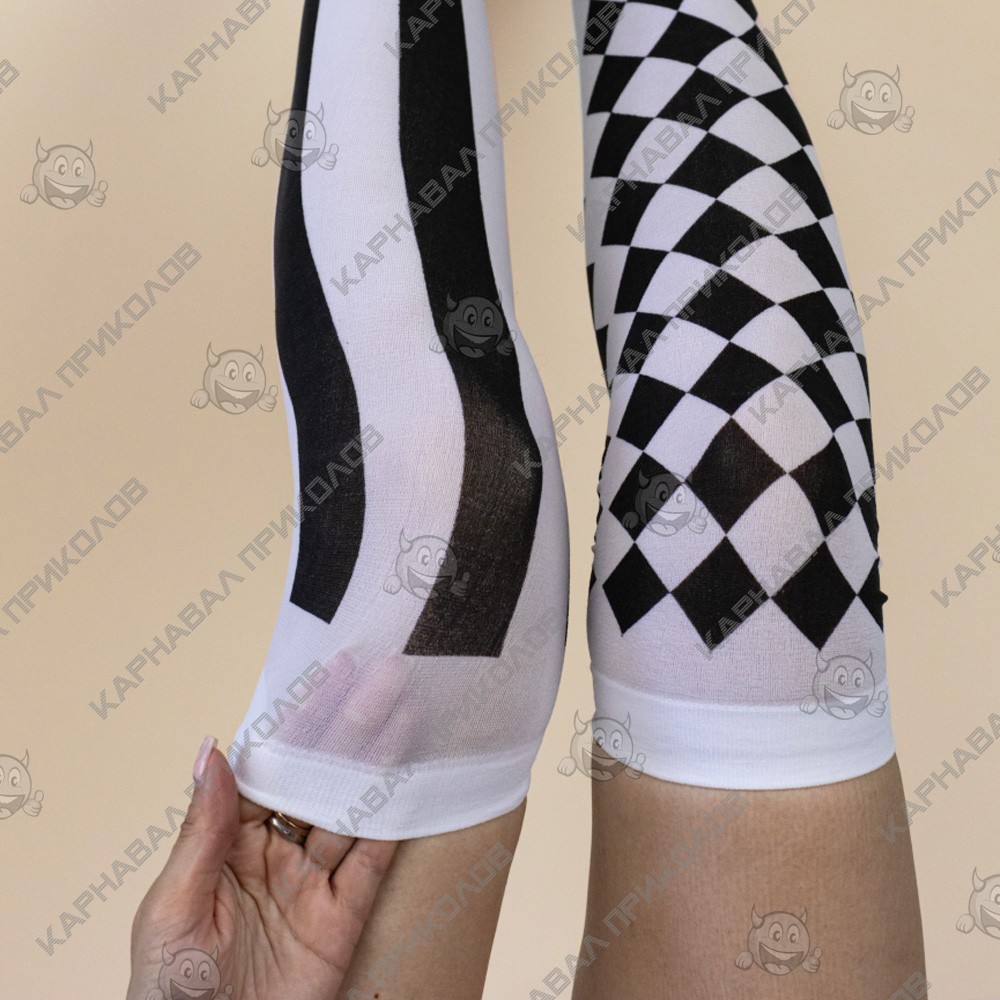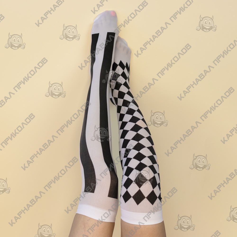 Чулки Хэллоуин Лолита (черно-белые) - поможет завершить свой мрачный образ на Хэллоуин. Нейлоновые чулки с изображением шнуровки с бантом идеально подходят для создания образа на тематический праздник День мертвых или Марди Гра. Чулки на резинке оптом и по дропшиппингу Вы можете купить в интернет магазине Карнавал Приколов.