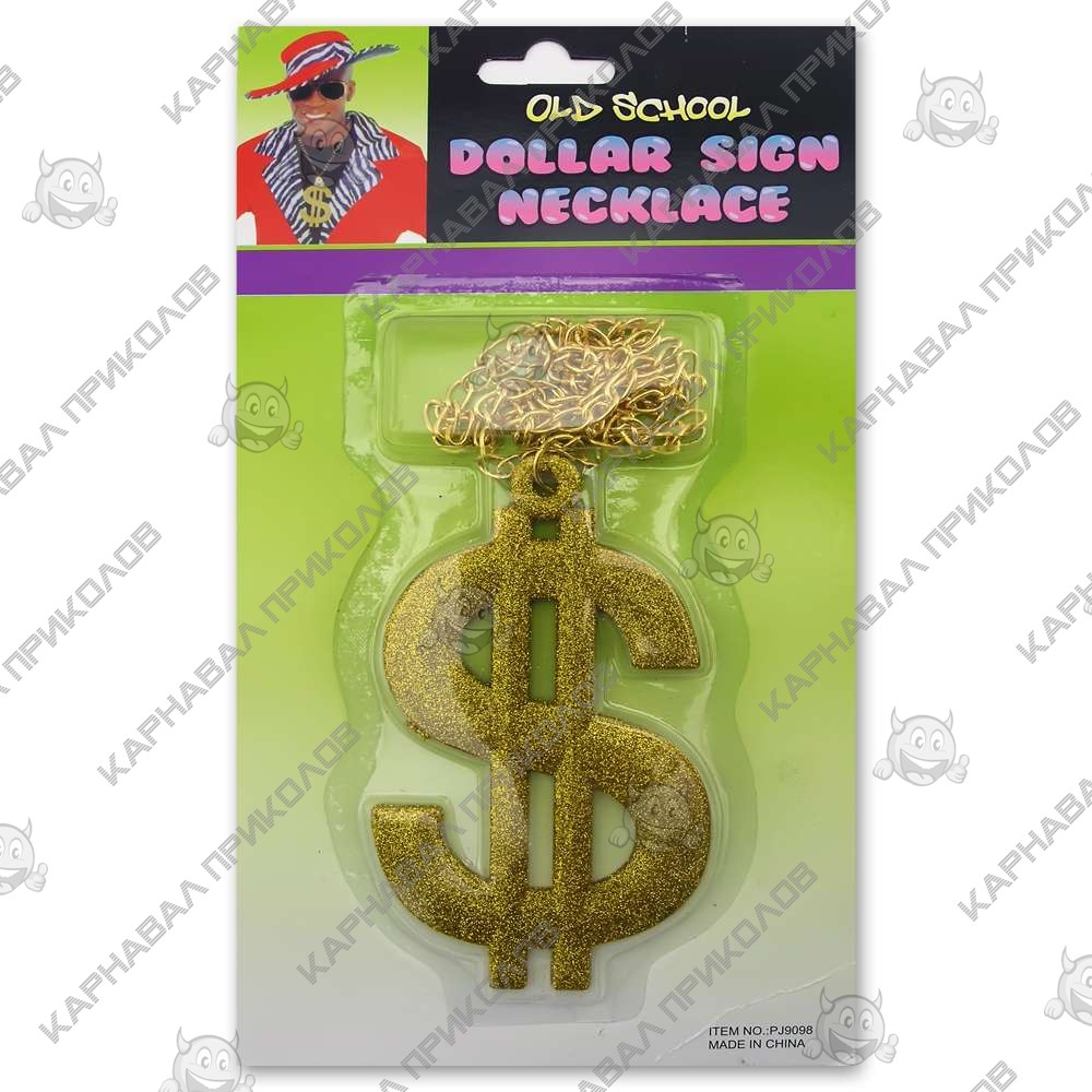 Золотой доллар - кулон на цепочке – признак настоящего крутого мачо! Покажите себя в необычном убранстве на тематической вечеринке! При наличии огромного, сверкающего на солнце, аксессуара, все девчонки ваши! Интернет - магазин Карнавал Приколов - это всегда безумно озорные оригинальные подарки, которые можно купить, независимо от тематики будущего мероприятия. Увесистое золотое украшение на шее придаст его владельцу уверенности и, наконец, покажет окружающим - Кто тут главный!. Доллар - кулон на массивной цепочке привлекает не только хихикающих подружек, но и серьезные деньги - доллары! Вам это не интересно? Подарите неординарный подарок другу - неудачнику – презент будет оценен по достоинству.