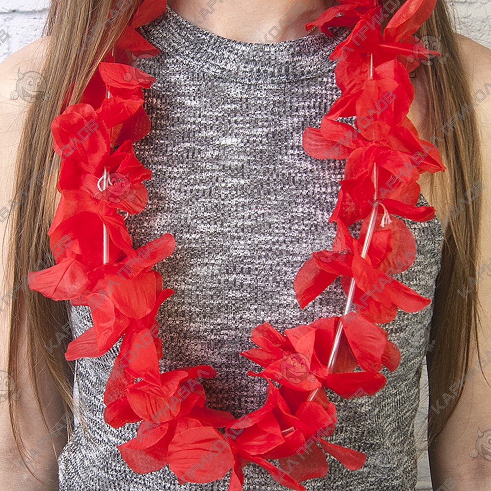 Без гавайских гирлянд из цветов веселая тематическая вечеринка в гавайском стиле не обойдется! Гавайские леи Орхидеи (красные) надевают на дорогих и высокочтимых гостей, но на маскараде пышные бусы только подчеркнут образ изящной островитянки. Плавные движения и завораживающие танцы в гавайских ритмах запомнятся гостям благодаря шикарным гирляндам на шее. Вечеринка перестает быть серой и скучной, когда в ее русло вливаются ярко - красочные Гавайи! Чтобы гости почувствовали себя в потоке праздника, интернет - магазин Карнавал Приколов рекомендует купить каждому гостю гавайский атрибут в качестве оригинального подарка – тогда никто не забудет о сказочно проведенном времени!
