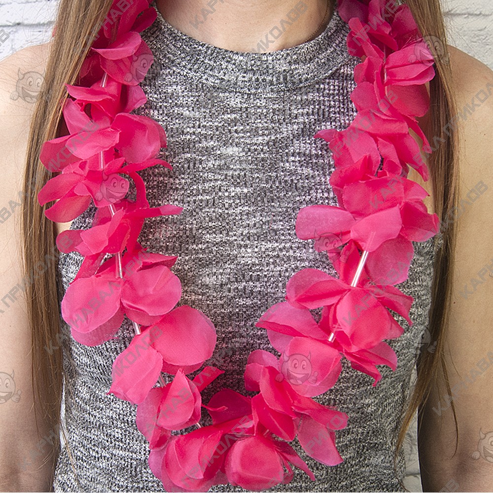 Без гавайских гирлянд из цветов веселая тематическая вечеринка в гавайском стиле не обойдется! Гавайские леи Орхидеи (малиновые) надевают на дорогих и высокочтимых гостей, но на маскараде пышные бусы только подчеркнут образ изящной островитянки. Плавные движения и завораживающие танцы в гавайских ритмах запомнятся гостям благодаря шикарным гирляндам на шее. Вечеринка перестает быть серой и скучной, когда в ее русло вливаются ярко - красочные Гавайи! Чтобы гости почувствовали себя в потоке праздника, интернет - магазин Карнавал Приколов рекомендует купить каждому гостю гавайский атрибут в качестве оригинального подарка – тогда никто не забудет о сказочно проведенном времени!