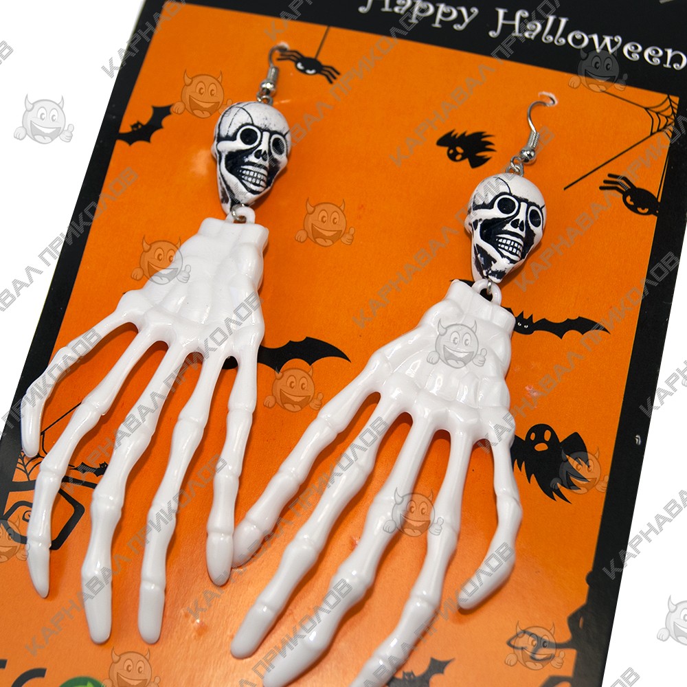 Серьги для ушей Рука скелета станут изысканным дополнением Вашего образа ко Дню Мертвых и придаст креативных ноток в него. Универсальные клипсы рука скелета из коллекции оригинальных подарков и прикольных аксессуаров нашего сайта подойдут по размеру всем желающим. Они легки и прочны. Станут отличным дополнением к праздничному образу на Хэллоуин. Подойдут как взрослым, так и детям. Купите оригинальные Серьги Руки скелета – они вам не раз пригодятся! Предлагаем Вам большой выбор украшений на голову для составления неповторимого образа на День Мертвых в интернет - магазине Карнавал Приколов.