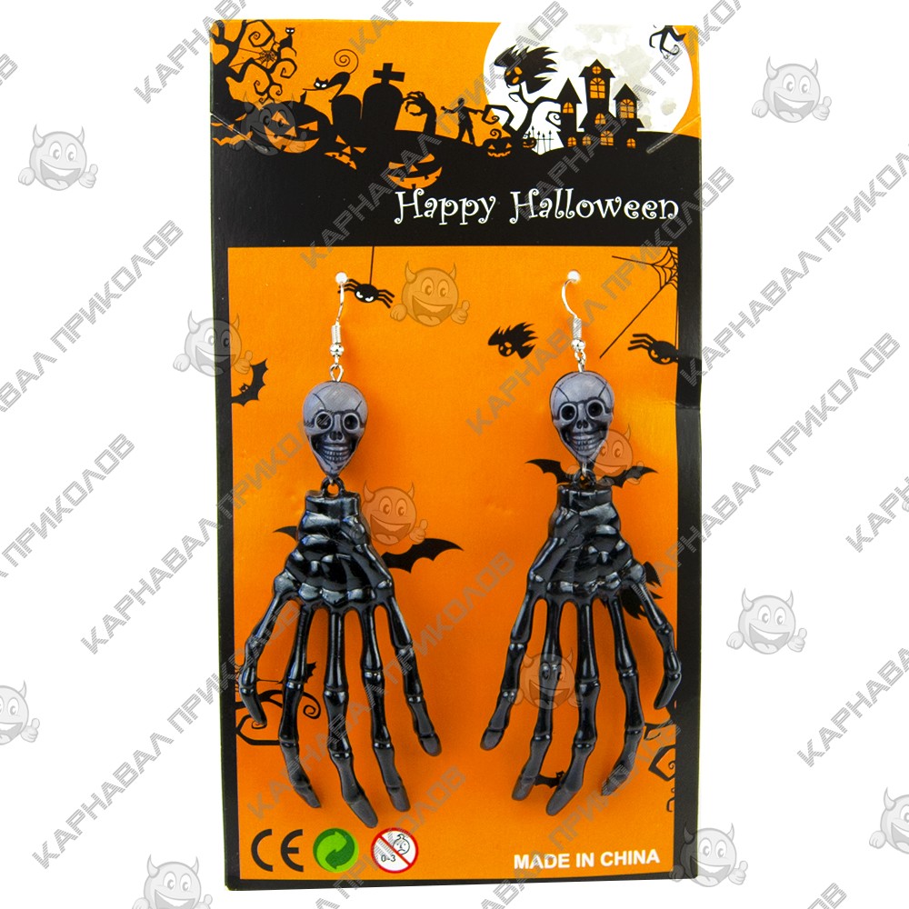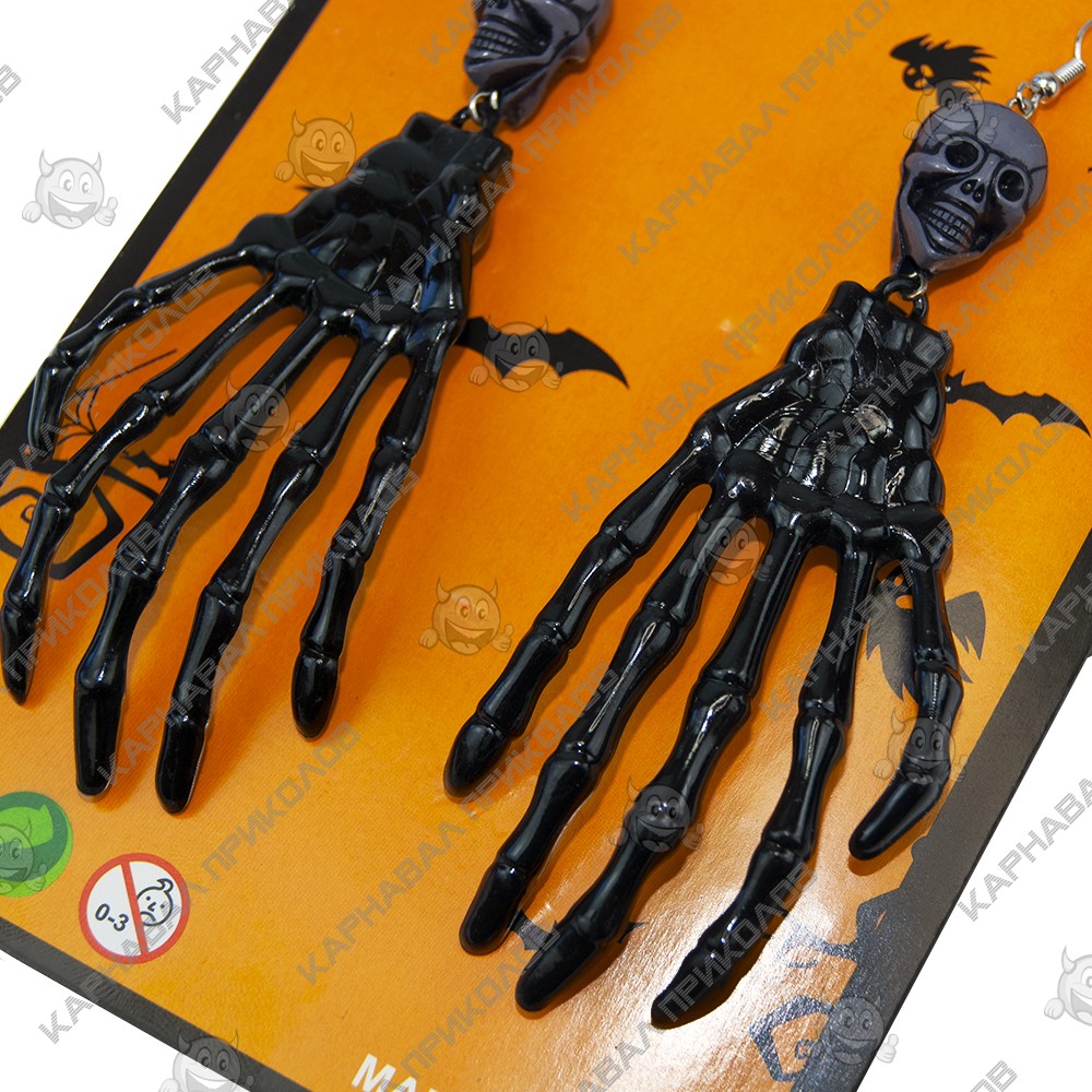 Серьги для ушей Рука скелета (черные)