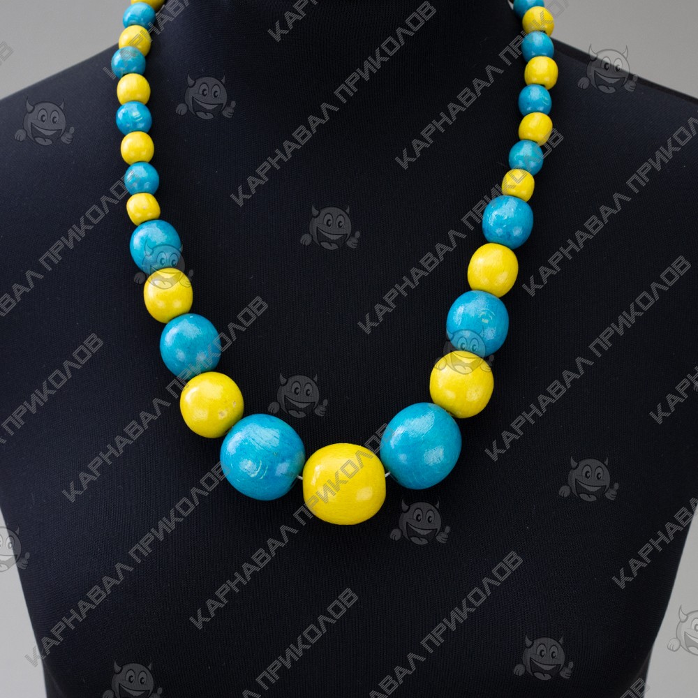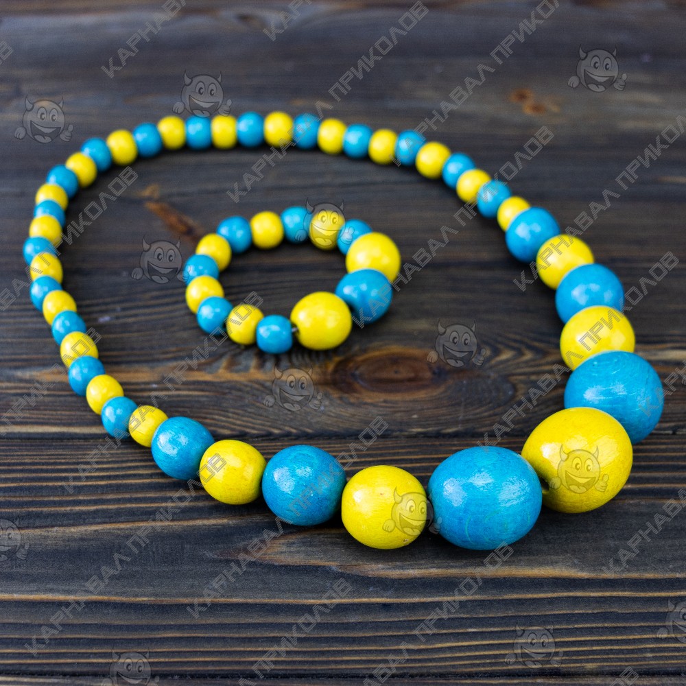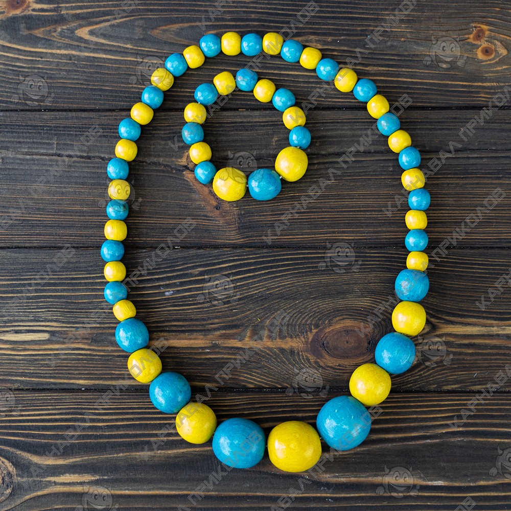 Украинские украшения набор Бусы и браслет (голубой с желтым) 2655