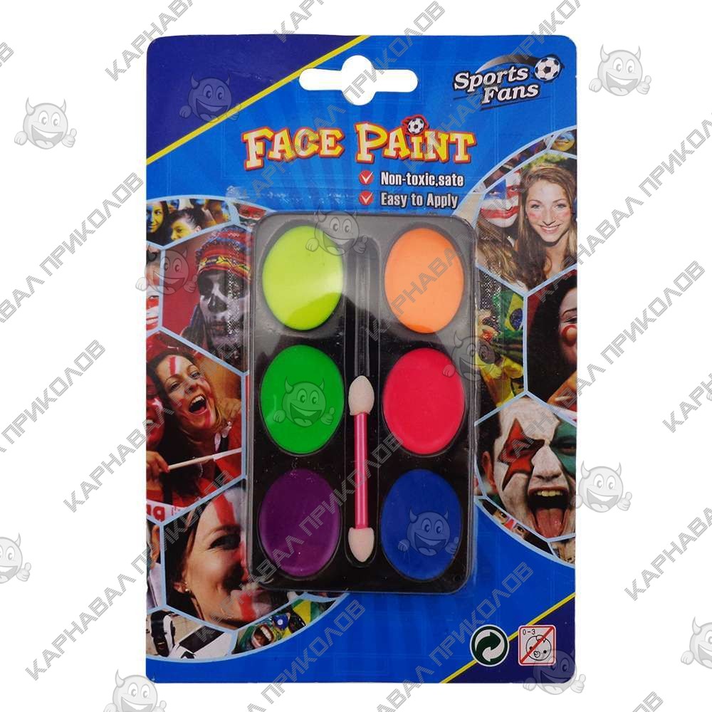 Создать веселый или грустный образ на тематической вечеринке, маскараде или утреннике поможет красочный грим. Грим палитра 6 цветов: желтого, зеленого, оранжевого, розового и синего подчеркнут характер хозяина и без проблем поднимут настроение окружающим. Купить оригинальный подарок из каталога интернет-магазина Карнавал Приколов можно не только ребенку для праздничной окраски лица на детском мероприятии - немножко фантазии, капелька воображения, и взрослый серьезный человек легко превращается в озорного непоседу с яркой искоркой на лице. Краска нетоксична, использование ее не ограничено по возрасту и времени. Краска мягко ложится на кожу и очень легко бесследно смывается.