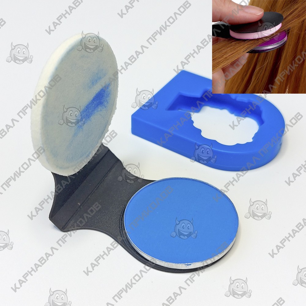 Мелок цветной пудра для волос Hair Chalk (голубой) - круглый мелок для волос в слайдерах с губкой-аппликатором пригодятся в случаях, когда необходимо создать особый стиль (творческая встреча, свидание, фотосессия). Всего несколько минут - и новый образ готов! Результат держится до нового мытья головы. Главные преимущества круглых мелков с аппликатором: Прядь зажимается внутри гибкой пудреницы с мелком, руки не имеют контакта с ним, поэтому не пачкаются, Крутить жгуты из волос не нужно, Окрашивание одной пряди происходит за несколько секунд, С точки зрения экономии времени из всех видов красок для волос - 100% выигрывают круглые мелки. Мелки для волос круглые имеют немного больший расход нежели мелки в брусках. Как наносить круглые мелки на волосы? Зажмите внутри слайдера и губки прядь и проведите по ней сверху вниз. Результат - прядь красивого выбранного вами оттенка. Образ довершим плойкой и утюжком фиксация - лаком. Кому подойдет окрашивание волос круглыми мелками? Нежные или радикальные цвета, простота нанесения заинтересуют подростков обоих полов, экспериментирующих с внешностью дам и джентльменов любого возраста. С Мелок цветной пудра для волос Hair Chalk (голубой) так легко меняться посреди недели и в лучшие дни каждого года. Вы можете начать эксперименты с окрашиванием волос (пряди, кончики, мелирование, градиент) прямо сейчас.