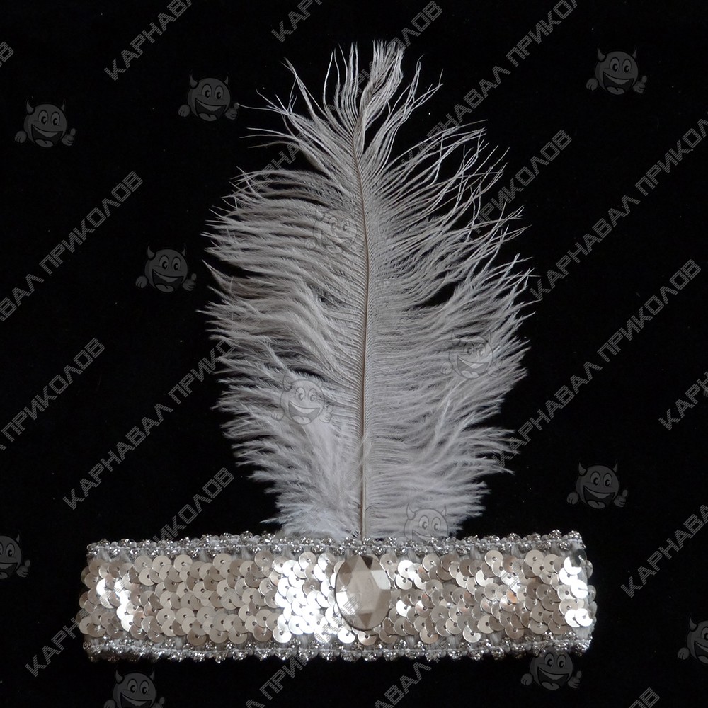 Повязка Чикаго - красивая повязка с большим и пушистым пером, перенесет Вас во времена гангстерского Чикаго и подчеркнет Ваш образ на любой вечеринке!