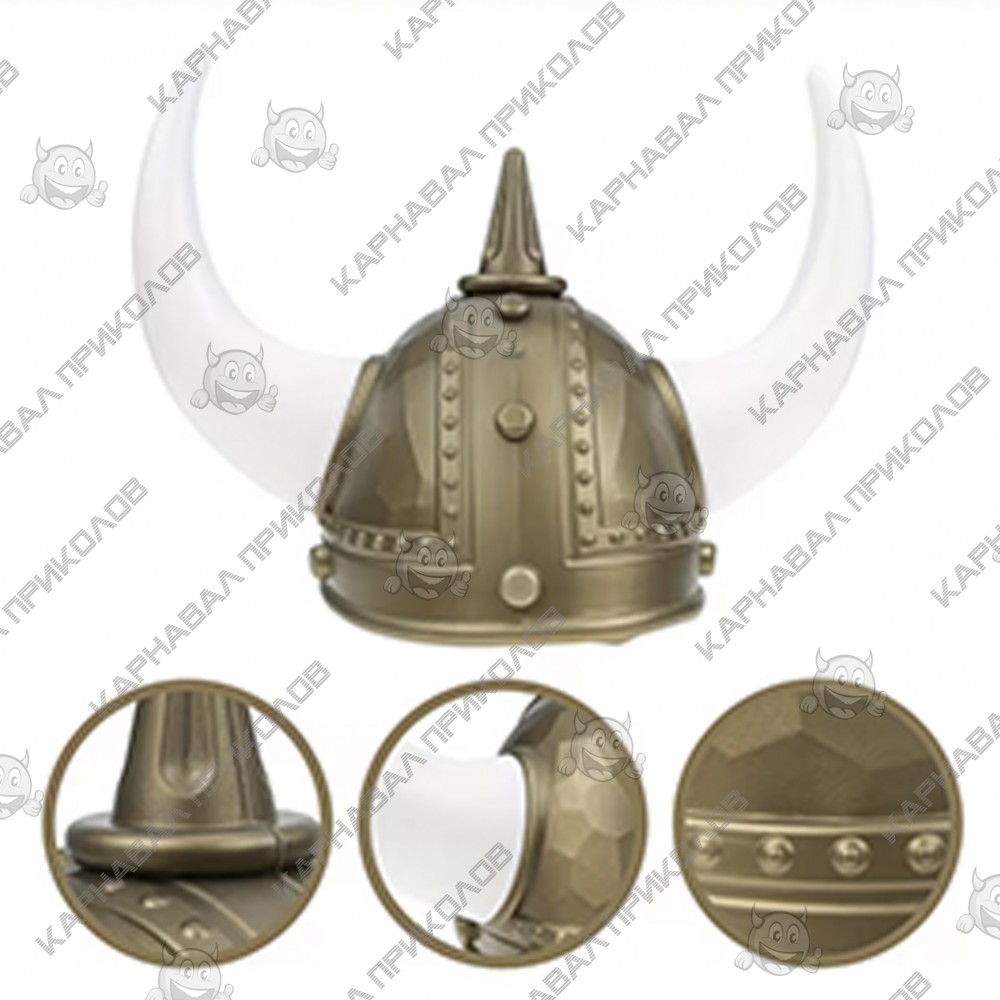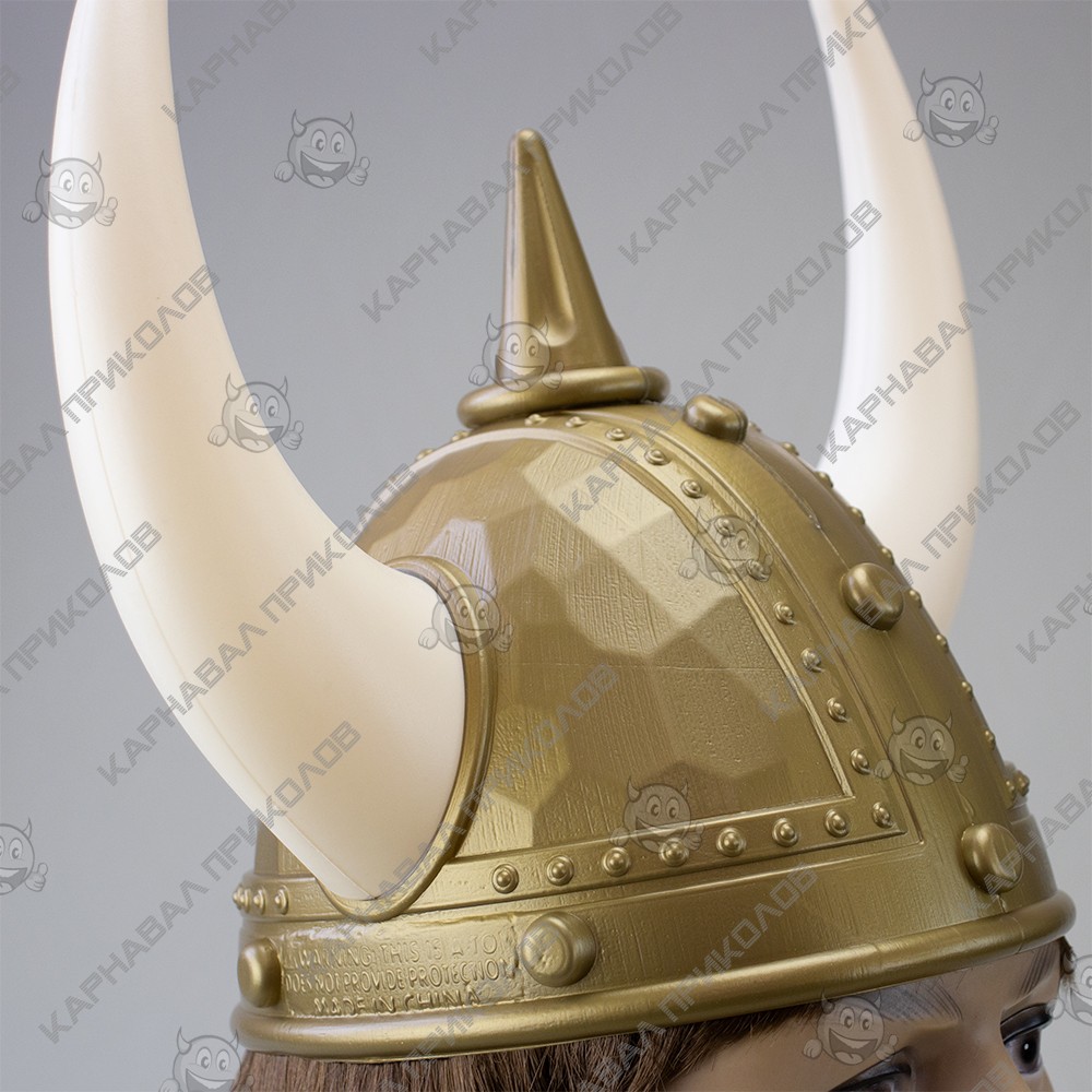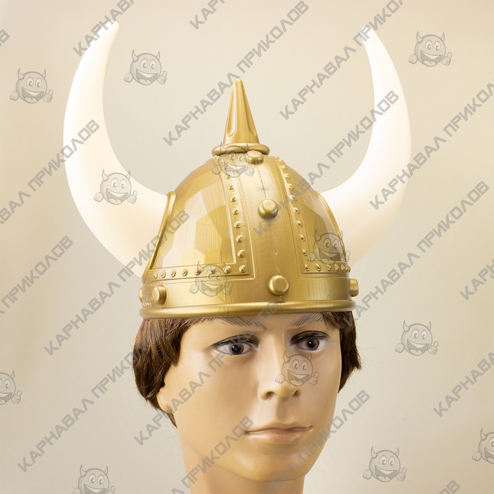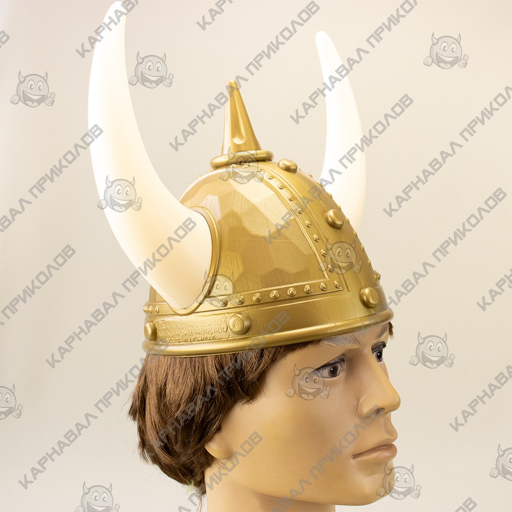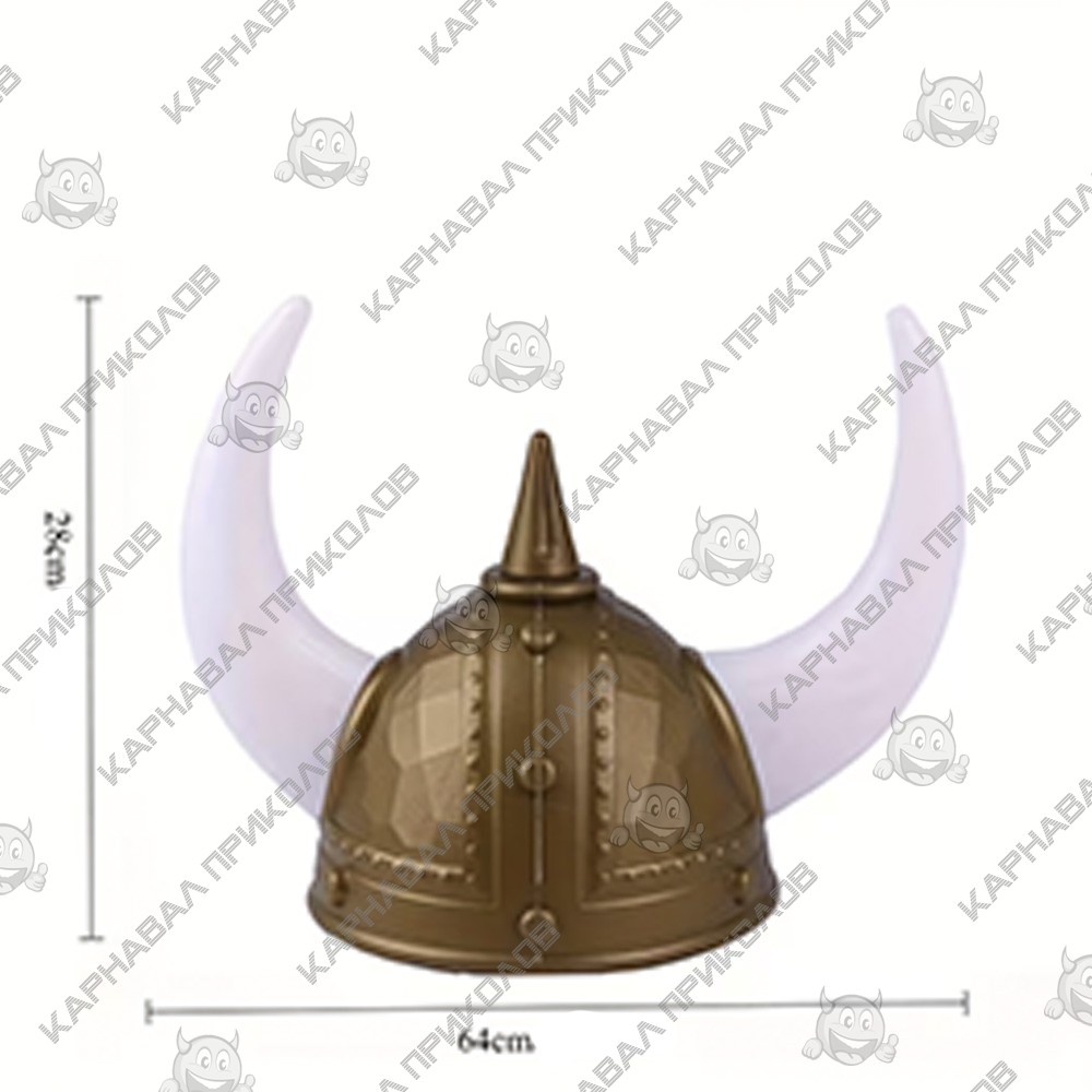 Прикольный яркий аксессуар Шлем Викинга пластмасса дополняющий Карнавальный костюм. В таком карнавальном головном уборе викинга любой мальчик или мужчина почувствует себя смелым и храбрым воином. Взрослые ведь тоже не прочь вспомнить детсво и поиграть в войнушку, например на корпоративе. Он идеально сможет дополнить костюм свирепого скандинавского воина.