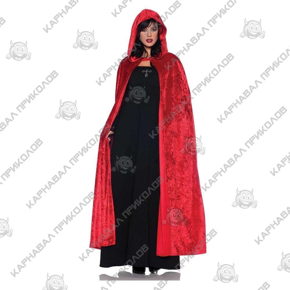 Карнавальный плащ красного цвета с капюшоном - дополнит образ красной шапочки, вампира, роковой миледи на хэллоуин. Накидка длинною 120см (без капюшона) выполнена из насыщенного красного велюра с красными завязками. Купить карнавальный костюм для взрослых оптом и по дропшиппинг недорого в интернет магазине Карнавал Приколов. Только у нас самый большой выбор взрослых карнавальных костюмов по доступной цене.