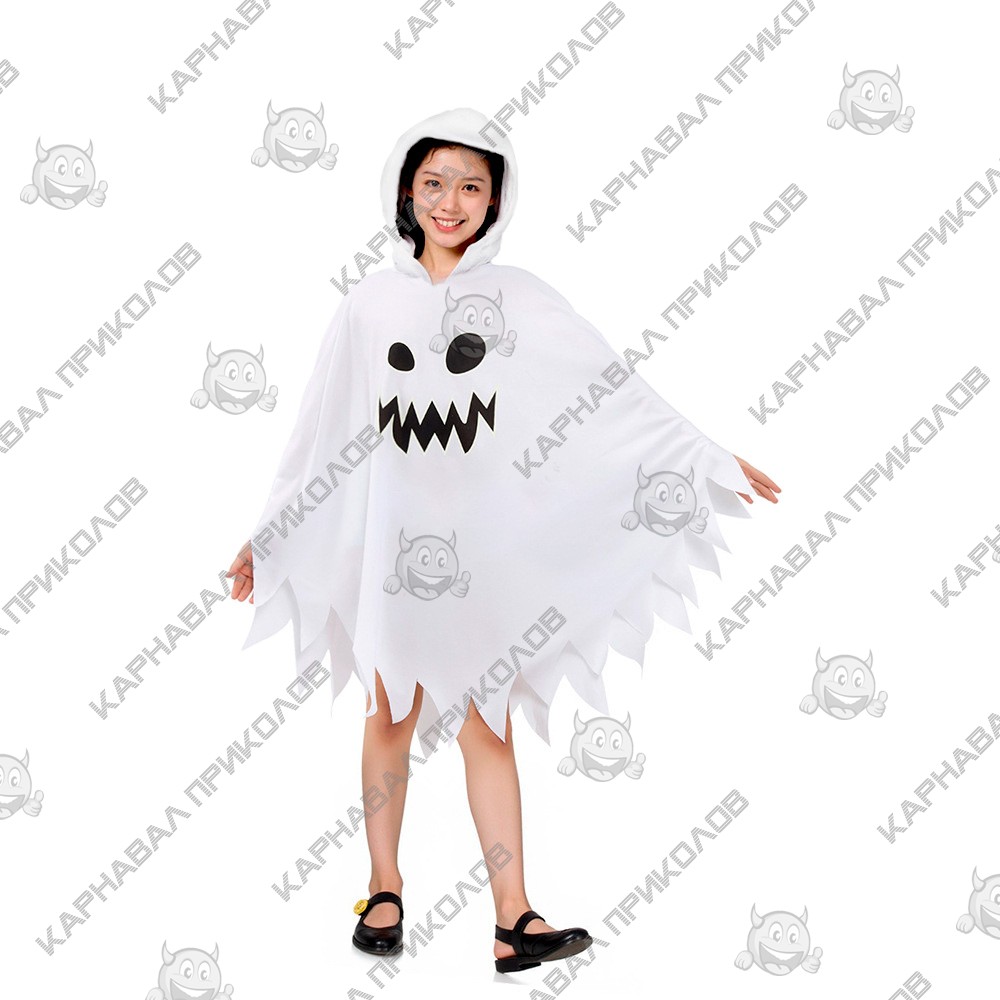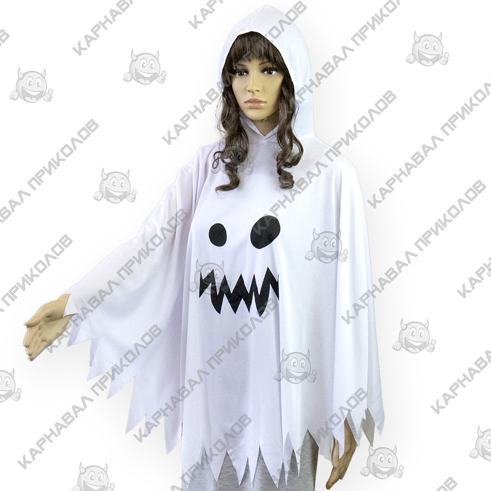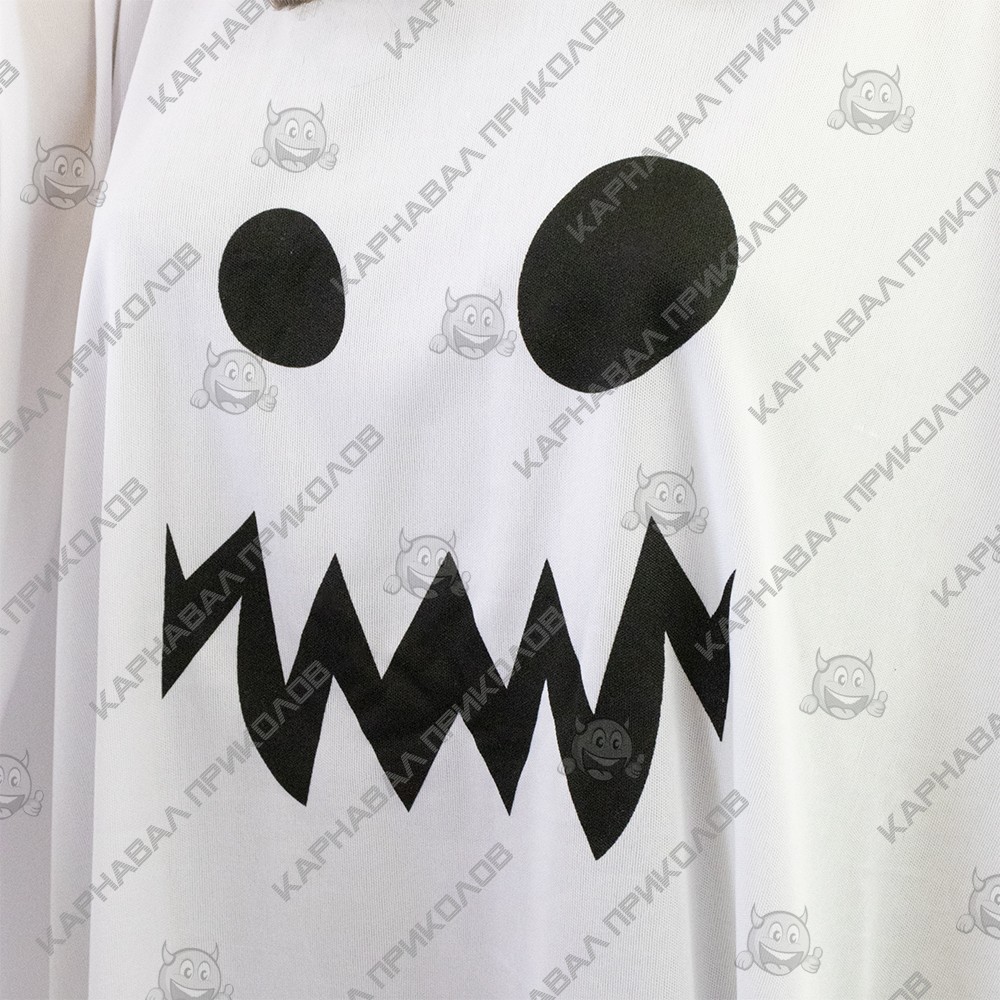 Карнавальный костюм Призрак (белый) - станьте легендой любой вечеринки! Ищете простой, но максимально эффектный образ для Хэллоуина, тематической вечеринки или маскарада? Карнавальный костюм Призрака - это классика, которая никогда не выходит из моды. Этот наряд моментально превращает вас в мистического персонажа, создавая атмосферу таинственности и веселого ужаса. Костюм выполнен в виде просторной белой накидки с характерным рваным краем, что придает образу динамику и узнаваемый призрачный силуэт. Накидка свободного кроя подходит для разных типов фигур. Центральный принт с изображением забавной, но пугающей рожицы призрака делает образ завершенным. Костюм легко надевается поверх обычной одежды, не сковывает движений и позволяет чувствовать себя комфортно на протяжении всего празника. Сделайте праздник незабываемым вместе с нашими костюмами!