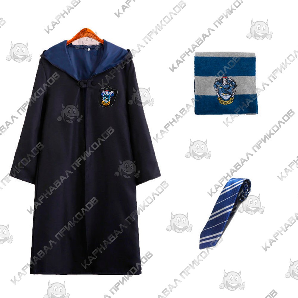 Костюм Гарри Поттер ученика Хогвартс Когтевран (Ravenclaw): Путь к знаниям и мудрости открыт! Мечтали оказаться в легендарном замке Хогвартс, пройти по его тайным коридорам и освоить магию? Теперь у вас есть такая возможность! Представляем вашему вниманию полный костюм ученика Хогвартс - Гарри Поттера, созданный специально для поклонников мира магии и волшебства. Этот комплект - не просто одежда, это ваш пропуск в сказочную реальность, где каждый взмах палочки может изменить всё. Этот набор - идеальное решение для тех, кто хочет сразу получить всё необходимое для создания аутентичного образа. Вам не придётся искать каждую деталь по отдельности. В комплект входят три ключевых элемента, которые мгновенно превратят вас в студента факультета Когтевран. Плащ, шарф, галстук - всё для вашего полного погружения! Плащ ученика Когтеврана: Мудрость и остроумие. Главный элемент костюма - это, конечно, плащ. Он выполнен из плотной, качественной ткани, которая выглядит так же, как и настоящая мантия из фильмов. Глубокий чёрный цвет плаща контрастирует с благородной синей подкладкой, символизирующей цвета факультета Когтевран. На груди вышит герб, который мгновенно делает образ узнаваемым. Длинные широкие рукава, большой капюшон и классический крой обеспечивают полное соответствие оригиналу. Плащ идеально подходит для того, чтобы создавать атмосферные фотографии и погружаться в роль. Шарф Когтеврана: Элегантность и интеллект. Без этого аксессуара образ был бы неполным. Шарф выполнен в традиционных цветах Когтеврана - синем и сером. Мягкий и приятный на ощупь материал дарит тепло и комфорт даже в прохладную погоду, а классическая вязка делает его стильным дополнением к любому наряду. Шарф выглядит настолько реалистично, что его можно носить и в повседневной жизни, ненавязчиво демонстрируя свою любовь к магическому миру. Финальный штрих в образе настоящего студента Хогвартс - галстук. Он также выполнен в сине-серых цветах, что идеально сочетается с шарфом и плащом. Костюм Гарри Поттер ученика Хогвартс Когтевран идеален, для тематических вечеринок и позволит стать самым популярным волшебником, для образа на Хэллоуин, для косплей-мероприятий и даже тематической Фотосессий. Создать яркий и запоминающийся образ, который станет настоящей гордостью очень просто! Этот костюм ученика Хогвартс - это не просто набор одежды. Это билет в мир магии, дружбы и приключений. Для комплекта в нашем магазине представлены и другие аксессуары для создания более детального образа. Например добавить к образу палочку или метлу, очки и множество других элементов. Не упустите возможность стать частью этой удивительной истории!