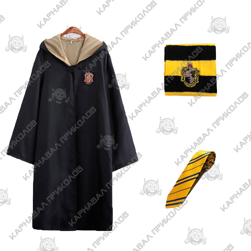 | Дополнительные характеристики: | мантия - длина от плеч: 122см, длина рукава: 60см, ширина плеч: 50см, ширина в талии: 58см галстук: 140х6см шарф: 18х156см |
