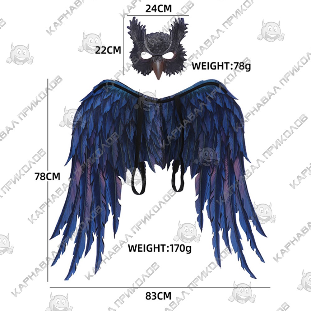 крылья: 83х78см, маска: 24х22