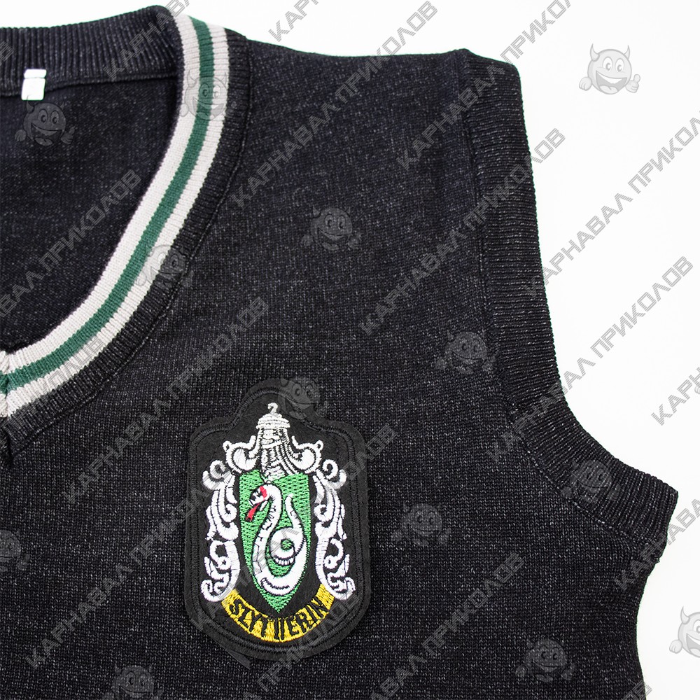 Для всех, кто когда-либо мечтал получить письмо из Хогвартса, пришло время облачиться в цвета своего факультета! Жилетки учеников факультетов Хогвартс – это идеальный способ продемонстрировать свою принадлежность к магическому миру. Выполненные из качественных материалов и с вниманием к деталям, эти жилетки станут ключевым элементом для косплея, тематических вечеринок, фотосессий или просто для того, чтобы добавить магического настроения в повседневный гардероб. Надевайте их, и пусть дух Хогвартса всегда будет с вами! Амбиции, хитрость, лидерство и находчивость – это ваша стихия? Тогда Жилетка ученика факультета Слизерин Хогвартс ждет вас! Жилетка темно-серого цвета с кантом в смелых и узнаваемых цветах Слизерина – зеленом и сером – эта жилетка украшена гербом факультета со змеёй. Незаменимый элемент для создания полноценного образа ученика Хогвартса. Жилетка изготовлена из прочных и комфортных материалов, обеспечивающих долговечность и удобство ношения. Она подчеркнет вашу решительность и стремление к успеху, делая вас частью одного из самых могущественных и влиятельных факультетов Хогвартса. Покажите всем, кто здесь настоящий лидер!
