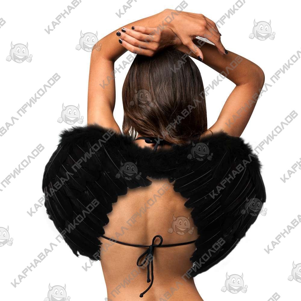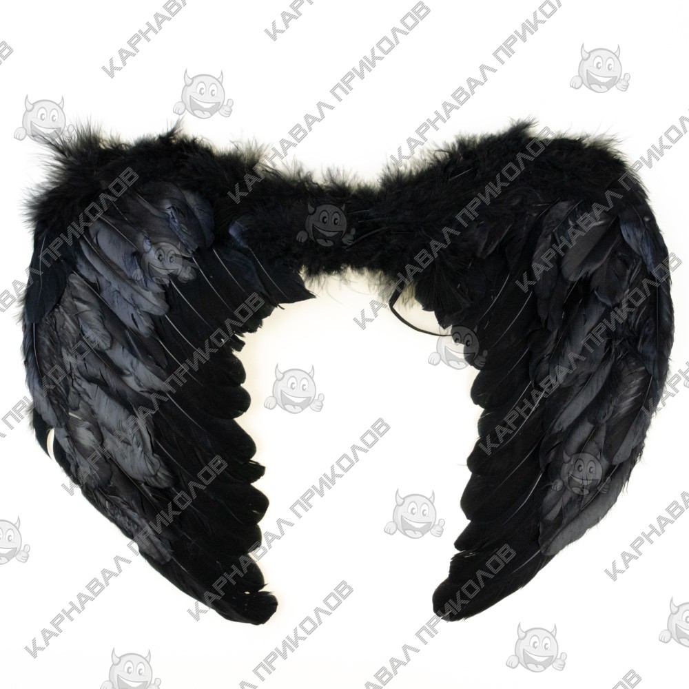 Крылья Ангела Средние 55х40см (черные)±3см. Размер изделия может отличаться от указанного на ±3см. Карнавальные белые крылья Ангела изготовлены из натуральных перьев на проволочном каркасе, покрытым картоном. Цвет пера черный, допускается легкая желтизна на материале (естественный оттенок натурального пера), так как изделие изготовлено из натурального белого пера. Надежно и практически крылья одеваются на плечи с помощью резинок. Интернет магазин Карнавал Приколов предлагает Вам купить карнавальные накладные Крылья Ангела Средние 55х40см (черные) оптом. Крылья ангела прекрасно подойдут как для детского утренника, так и для маскарадного представления или концерта, фотосессии или свадьбы.