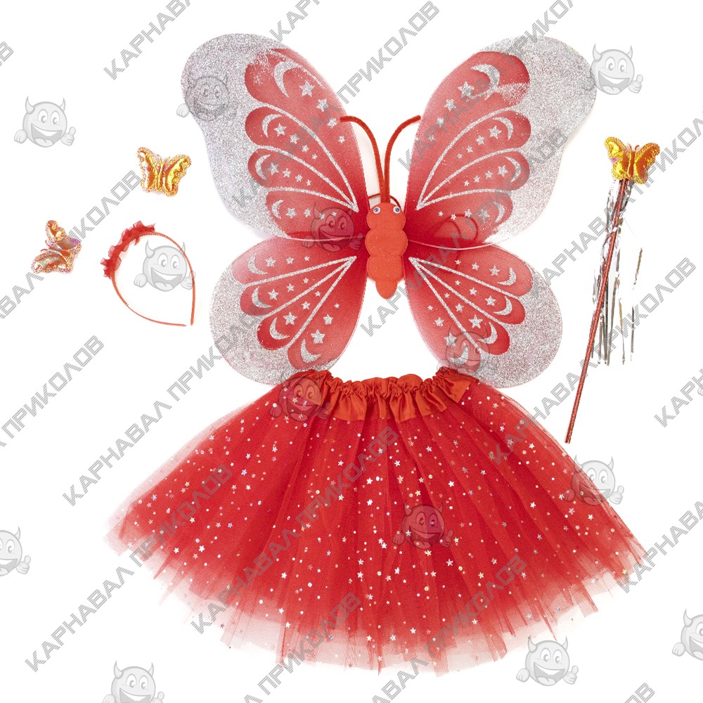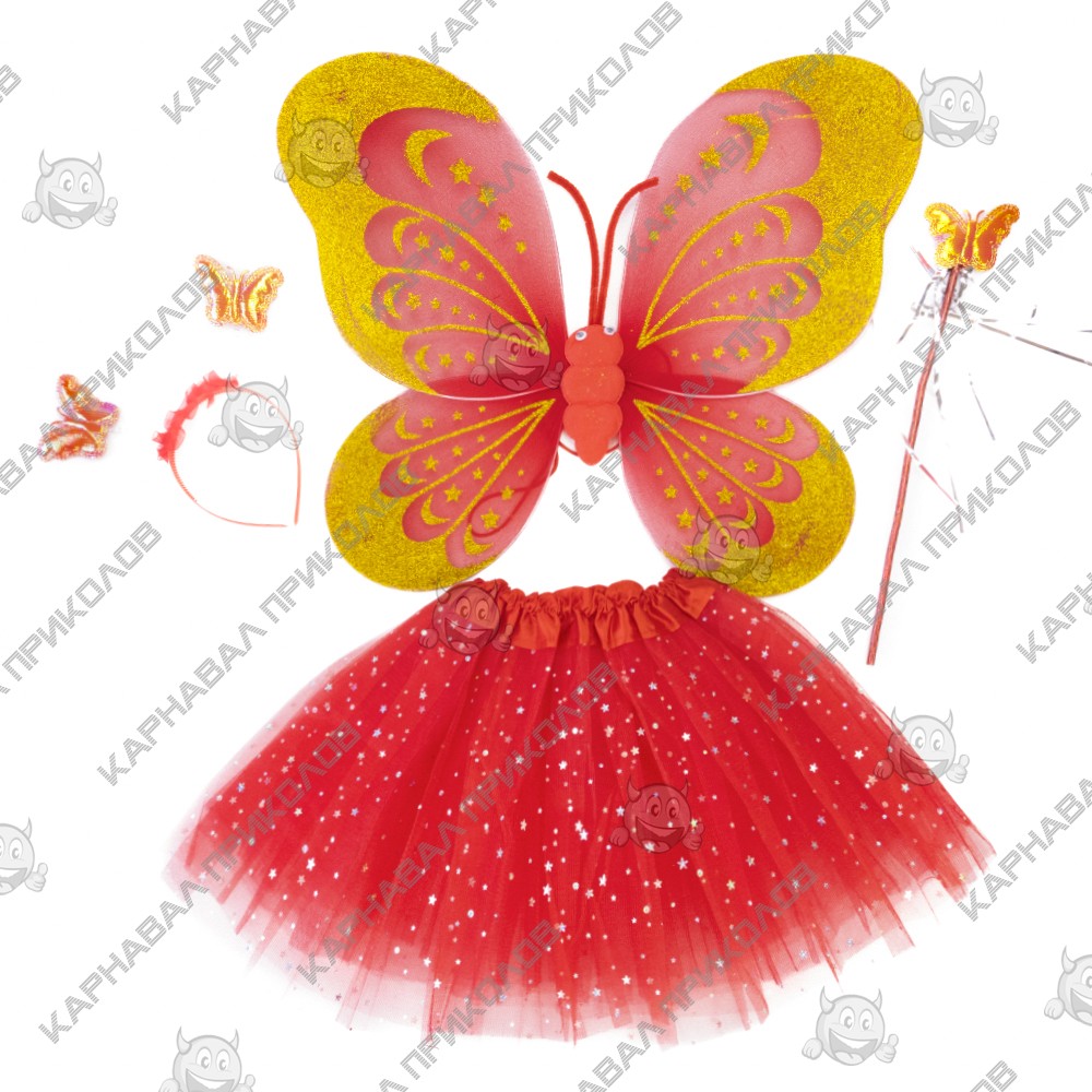 | Дополнительные характеристики: | Крылья - 50х38см, юбка из фатина: ширина в талии - 45 см, длина юбки - 30см, палочка:35х7х1см, ободок : 22х21х1,5см |