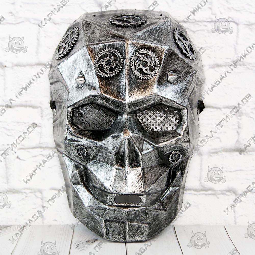 Серебряная маска Киборга — это футуристичный атрибут для карнавала. Изделие изготовлено из пластика, который очень реалистично имитирует металл. Закажите и проверьте сами! Сфера применения данной маски довольно обширна – это и активные молодые люди с хорошим чувством юмора, которые с удовольствием наденут такую маску - череп, например, на Хэллоуин. А также футбольные фанаты, которым иногда надо сохранить свою анонимность.