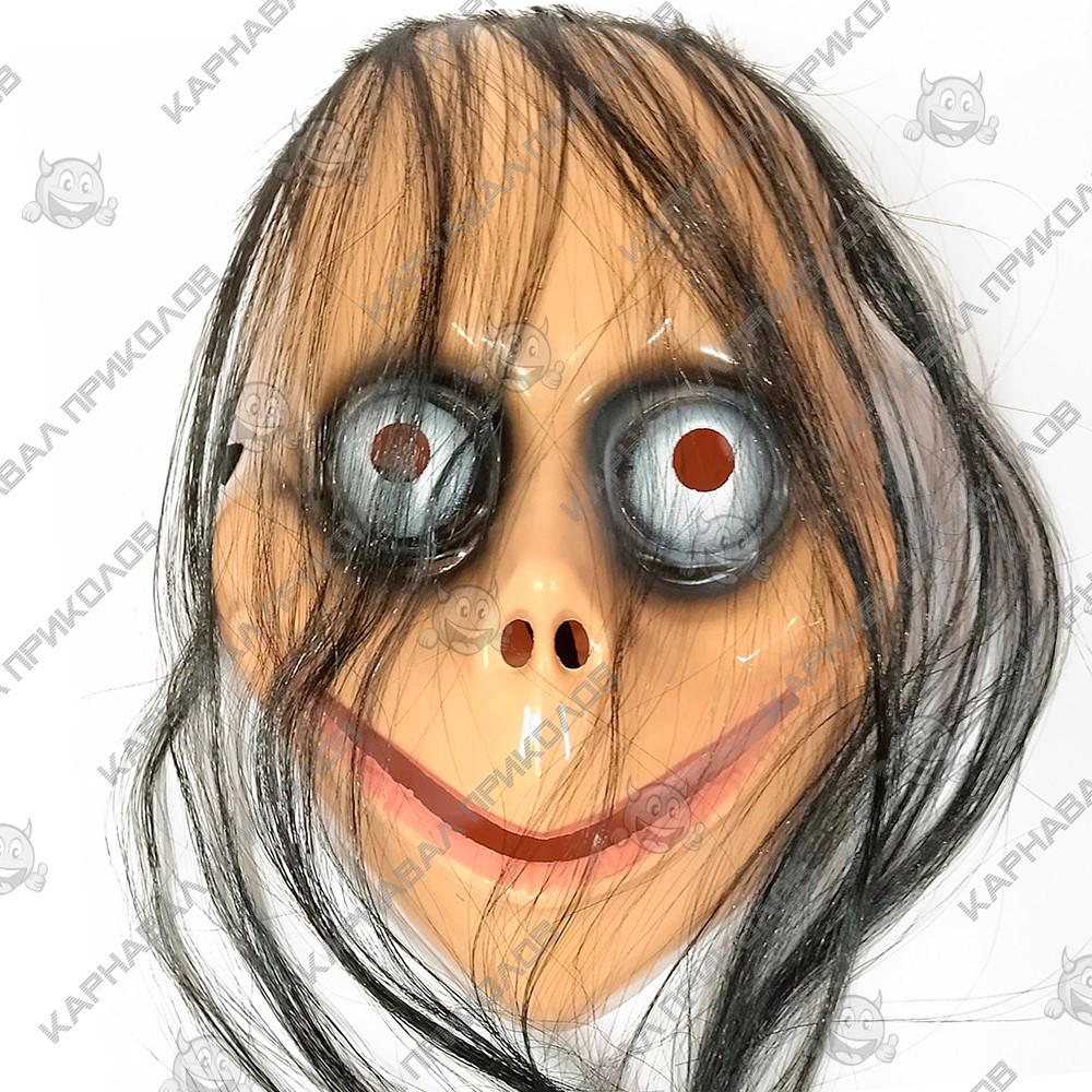 Момо (англ. Momo) - это очень интересный персонаж для обсуждения и прославилась она в WhatsApp как самая жуткая дама, которой лучше не звонить и не писать! Если верить интернету, то Момо появилась в Латиноамериканских странах. Она атакует людей жуткими звонками и страшными сообщениями в WhatsApp. Сначала Момо добавляется в друзья, начинает писать сообщениями с дикими угрожающими приказами, угрожая убить в случае их невыполнения и доводит людей до депрессивного состояния, которое заставляет людей оглянуться и проверить окружающих людей рядом. Вы можете купить Маску Страшной Момо из Вотсап у нас на сайте по привлекательным ценам. И создать образ для вечеринки Хорор, на Хэллоуин или просто если хотите напугать кого-то.