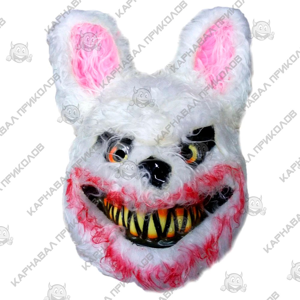Маска Страшный Кровавый Кролик (Halloween Scary Horror mask) изготовлена из пластика с ворсовым покрытием для имитации меха. Белая маска с розовыми ушками, зловещими глазами, огромными зубами и в крови не оставит равнодушним никого. Маска закрывает все лицо. Размер изделия : универсальный. Маска для вечеринки надежно фиксируется на голове с помощью резинки. Карнавальные маски принесут изюминку в образ вашего персонажа на тематической вечеринке, карнавале или маскараде. Многообразие персонажей, безусловно, облегчит поиск оригинального образа. Наш магазин предлагает карнавальные аксессуары оптом и для дропшипперов, вы можете оформить заказ на сайте Карнавал Приколов и задать любые интересующие вопросы менеджеру, заказав звонок на нашем сайте.
