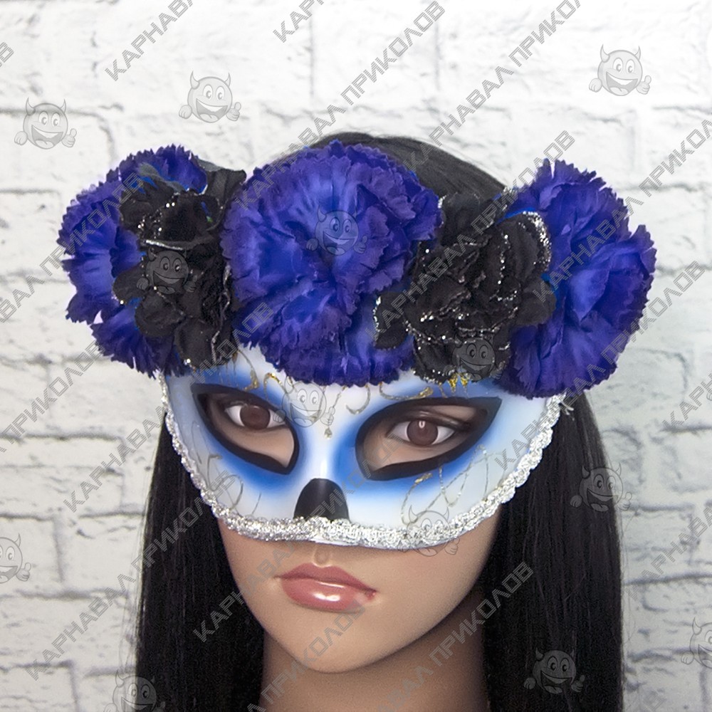 Маска День мертвых (синяя) (Halloween Scary Horror mask) изготовлена из пластика. Маска с синими и черными хризантемами закрывает половину лица. Размер изделия : универсальный. Маска для вечеринки надежно фиксируется на голове с ленточек. Дополнить свой устрашающий образ на Хэллоуин можно с карнавальными аксессуарами: Митенки длинные, перчатки гипюровые короткие или длинные, грим палитра (8 цветов), чулки с черепом и паутиной белой Карнавальные маски принесут изюминку в образ вашего персонажа на тематической вечеринке, карнавале или маскараде. Многообразие образов, безусловно, облегчит Ваш поиск оригинального образа. Наш магазин предлагает карнавальные аксессуары оптом и для дропшипперов, вы можете оформить заказ на сайте Карнавал Приколов и задать любые интересующие вопросы менеджеру, заказав звонок на нашем сайте.