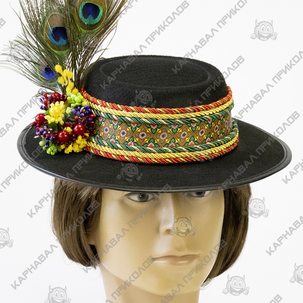 Карнавальная шляпа Гуцульская КРИСАНЯ 13772 - это уникальный аксессуар, который подчеркнет вашу индивидуальность и придаст яркости любому образу. Шляпа выполнена из черного фетра, украшена лентой с традиционным орнаментом, разноцветным кантом, что придает ей традиционный и праздничный вид. Дополнительно шляпа декорирована перьями и искусственными цветами, что делает его еще более выразительным и привлекательным. Эта шляпа является частью украинского национального костюма для мужчин, олицетворяя богатое культурное наследие и традиции гуцульского региона. Национальная патриотическая символика в дизайне шляпы отмечает важность сохранения и уважения к украинским традициям. Эта шляпа является эксклюзивным продуктом компании Карнавал Приколов и доступна для покупки как оптом, так и по дропшиппингу, что позволяет легко приобрести ее в нужном количестве. Карнавальная шляпа Гуцульский КРИСАНЯ 13772 идеально подходит для тех, кто ценит народное творчество и стремится сохранить традиции гуцульской культуры в современном гардеробе. Этот аксессуар станет ярким дополнением к любому наряду и подчеркнет вашу любовь к этническим мотивам.
