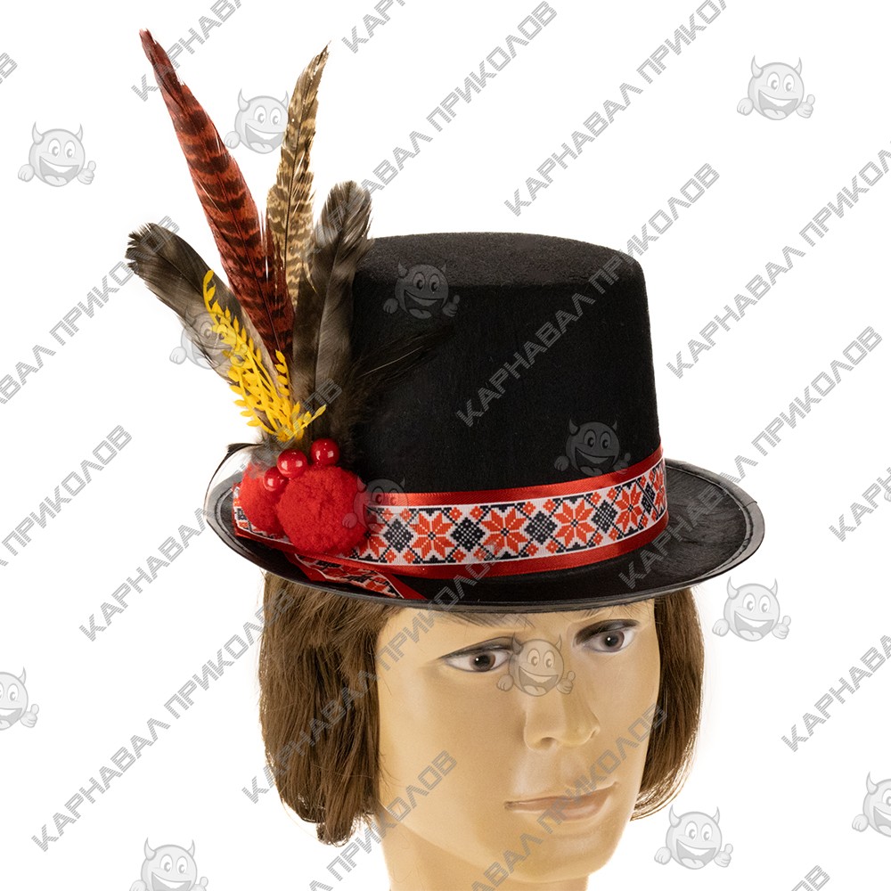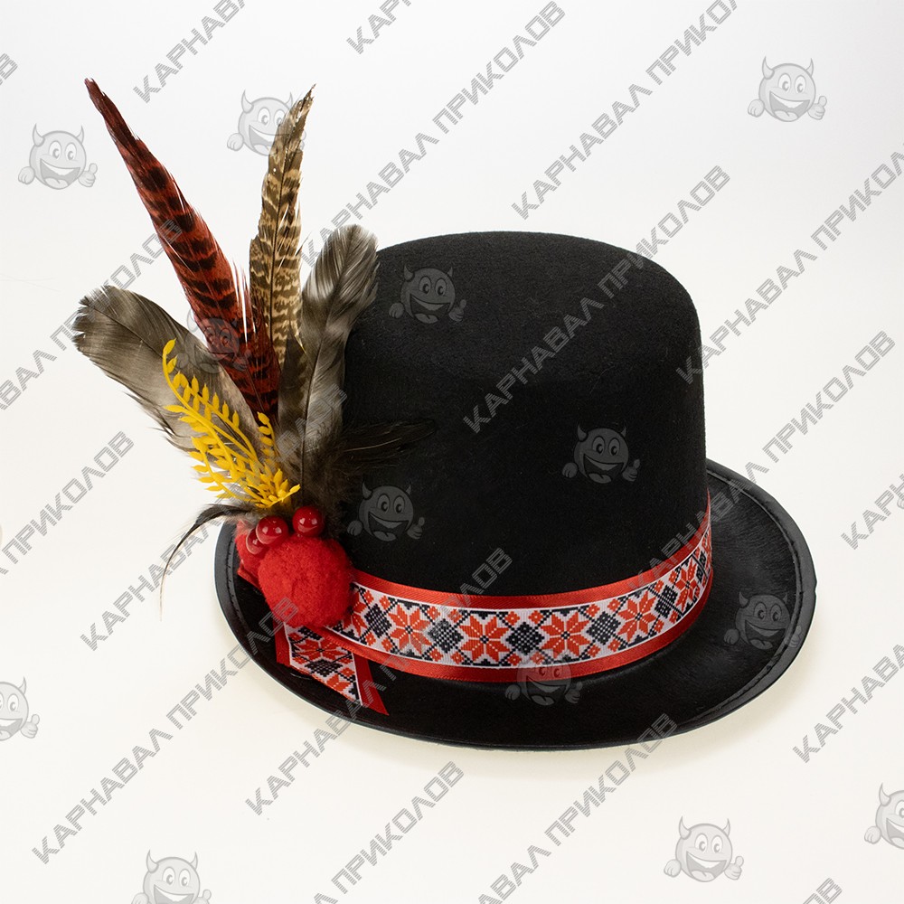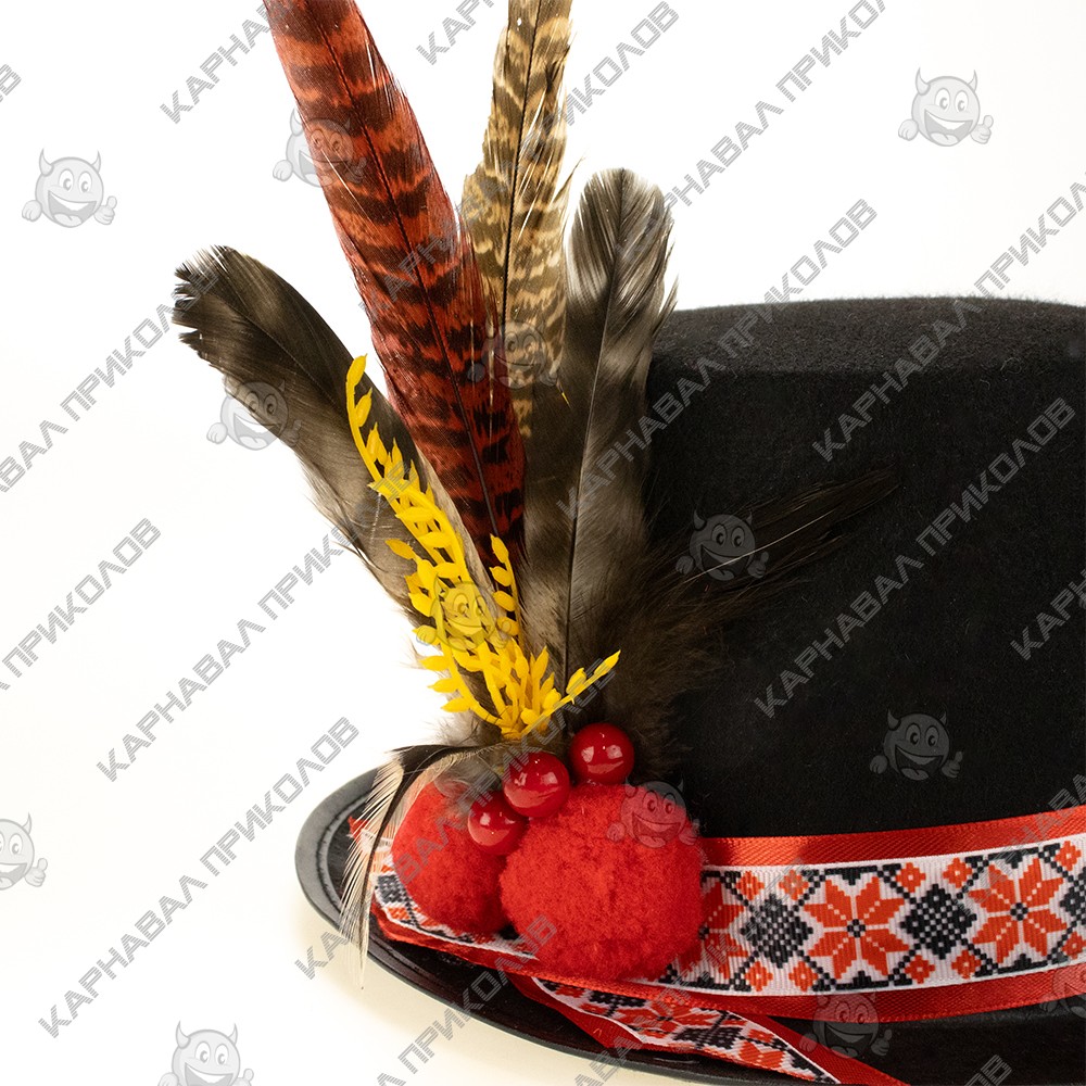 Карнавальная шляпа Гуцульская МОТИВЫ 13130 представляет собой великолепный пример традиционного гуцульского головного убора с современным акцентом. Выполненная в элегантном черном цвете, шляпа украшена широкой лентой с изысканной вышивкой в красно-черных тонах, характерной для гуцульской культуры. Особую привлекательность придают декоративные элементы, прикрепленные с левой стороны шляпы: несколько длинных перьев, ярко-желтые искусственные листья, красные ягоды и выразительный красный помпон. Этот аксессуар добавляет уникальности и подчеркивает этнические мотивы, сохраняя аутентичность и традиции гуцульской культуры. Эта шляпа не только стильный аксессуар, но и символ культурного наследия, идеально подходящий для тех, кто ценит красоту народного творчества и желает внести в свой образ нотку изысканного этнического стиля. Карнавальная шляпа Гуцульская МОТИВЫ 13130 является эксклюзивным продуктом компании Карнавал Приколов и доступна для покупки как оптом, так и по дропшиппингу, что делает её отличным выбором для продавцов и покупателей.