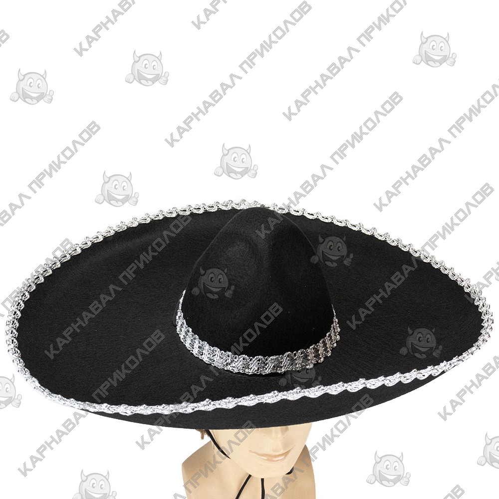 Шляпа Сомбреро Мариачи (черная с серебром) - головной убор для вечеринки в мексиканском стиле. Шляпа Сомбреро Мариачи черная с серебром в интернет-магазине Карнавал Приколов Вы получаете не только качественный товар, но и 100 % позитивных впечатлений от приобретения. Среди нашего широкого ассортимента товаров, Вы найдете множество необычных и оригинальных подарков для различных мероприятий. Прикольные шляпы и карнавальные шапки принесут изюминку в образ вашего персонажа на тематической вечеринке, карнавале или маскараде. Многообразие форм, фасонов и моделей головных уборов, безусловно, облегчит Ваш поиск оригинального образа.