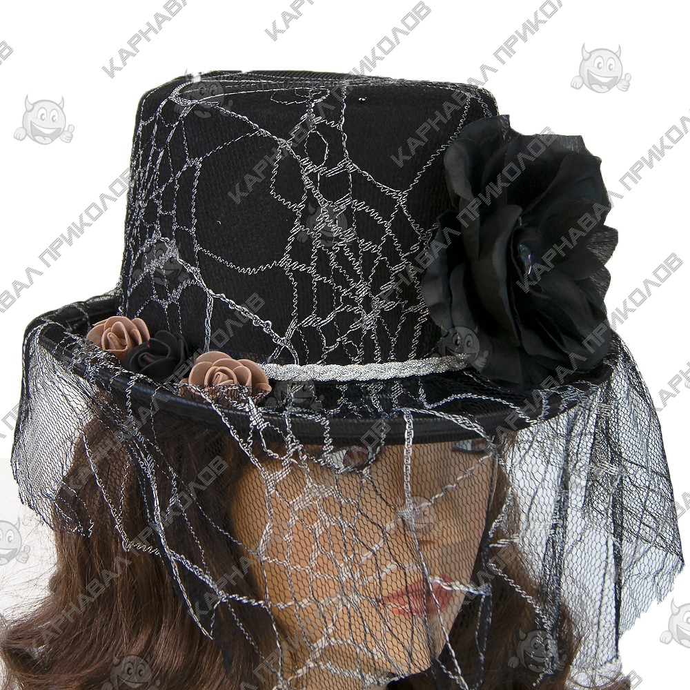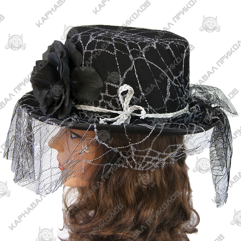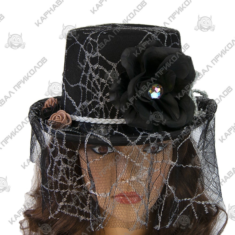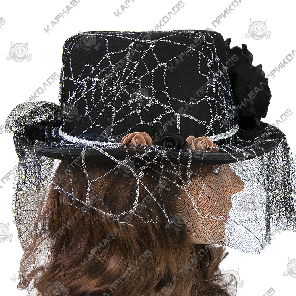 Шляпа Стимпанк Викторианская Готика черная с белым 11473