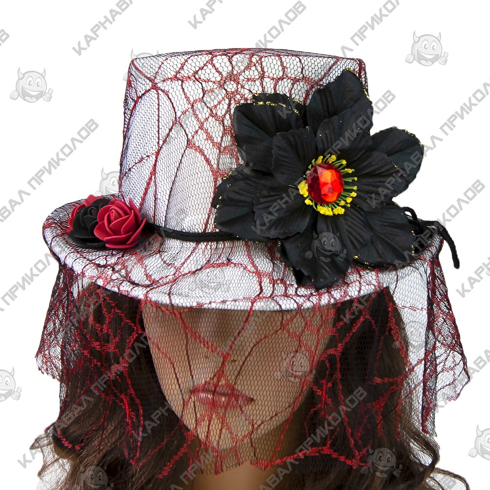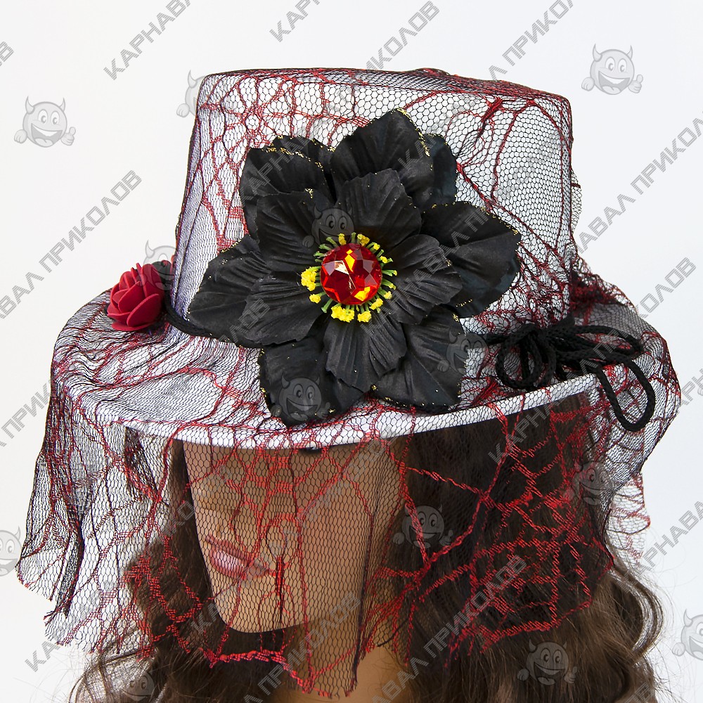 Шляпа Стимпанк Викторианская Готика белая с красным 11462