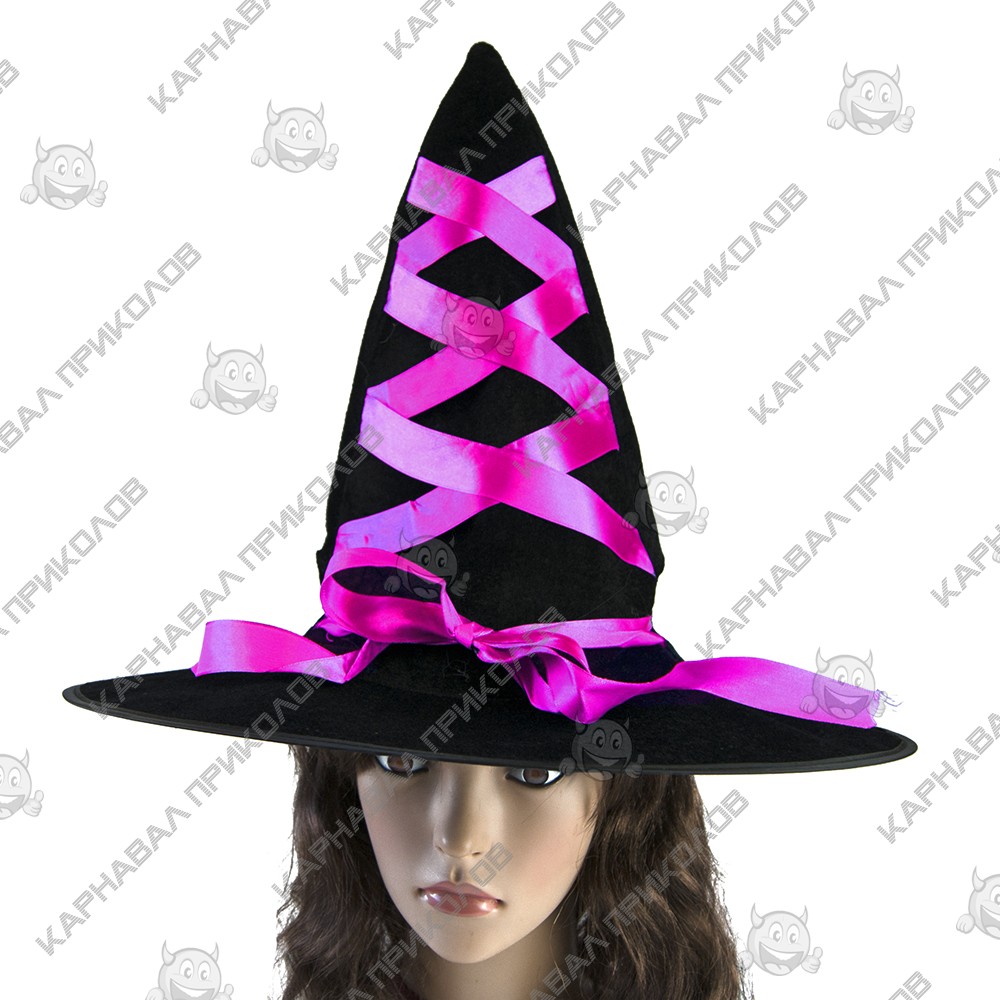 Шляпа Ведьмы с лентой розовой - это традиционный атрибут злой колдуньи, прекрасно дополнит Ваш внешний вид на торжестве и, возможно, еще не раз пригодится в будущем! Шляпа Ведьмы декорированная атласной лентой яркого розового цвета. Создается имитация шнуровки на конусе шляпы. Такая шляпа органично дополнит костюм ведьмы. Облик ведьм является одним из классических женских образов на Хэллоуин. Вы сможете воплотить в реальность давно задуманный образ! Шляпа Ведьмы с лентой розовой в интернет-магазине Карнавал Приколов Вы получаете не только качественный товар, но и 100 % позитивных впечатлений от приобретения. Среди нашего широкого ассортимента товаров, Вы найдете множество необычных и оригинальных подарков для различных мероприятий. Прикольные шляпы и карнавальные шапки принесут изюминку в образ вашего персонажа на тематической вечеринке, карнавале или маскараде. Многообразие форм, фасонов и моделей головных уборов, безусловно, облегчит Ваш поиск оригинального образа.