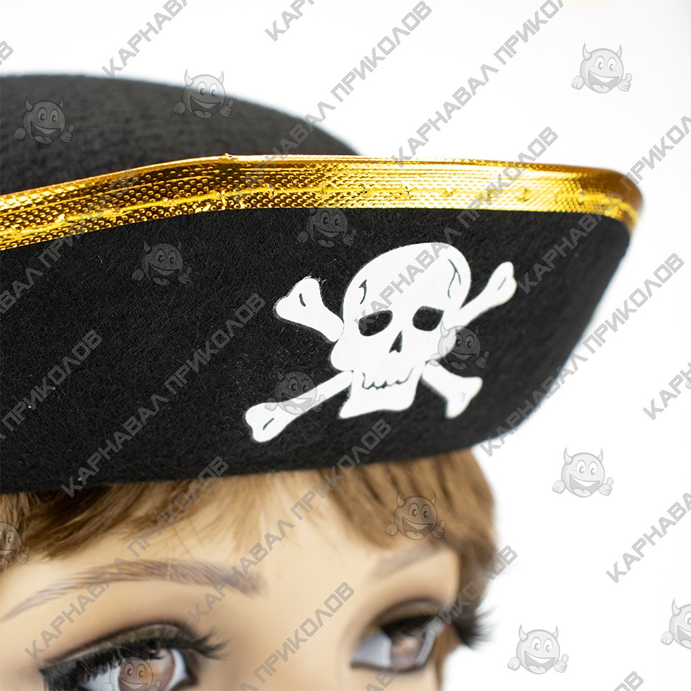 Хочешь почувствовать себя настоящим завоевателем семи морей? Фетровая пиратская шляпа в виде треуголки с закругленными краями, золотистой каймой по краям дополнят ваш карнавальный костюм. Шляпа детская Пирата из фетра подчеркнет ваш пылкий нрав и дополнит образ капитана пиратского корабля. Купить детскую пиратскую шляпу возможно в нашем интернет магазине. Купив Шляпа детская Пирата фетр в интернет-магазине Карнавал Приколов Вы получаете не только качественный товар, но и 100 % позитивных впечатлений от приобретения. Среди нашего широкого ассортимента товаров, Вы найдете множество необычных и оригинальных подарков для различных мероприятий. Прикольные шляпы и карнавальные шапки принесут изюминку в образ вашего персонажа на тематической вечеринке, карнавале или маскараде. Многообразие форм, фасонов и моделей головных уборов, безусловно, облегчит Ваш поиск оригинального образа.