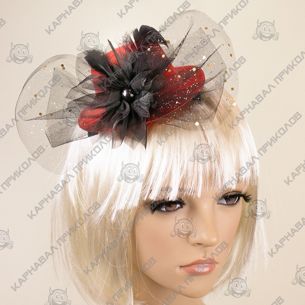 Шляпка на ободке Ведьмочка с принтом оранжевая с летучей мышью