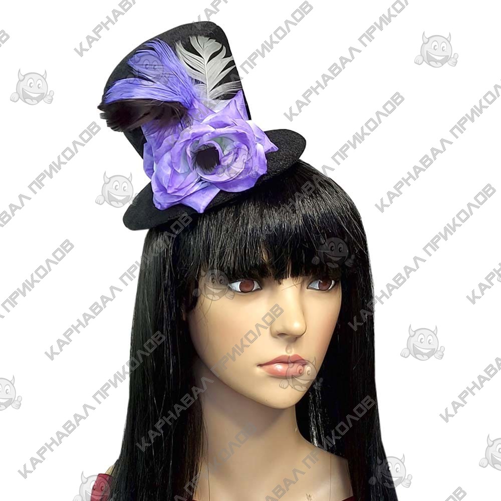Карнавальная шляпка на заколках Жозефина (фиолетовая роза) 8948