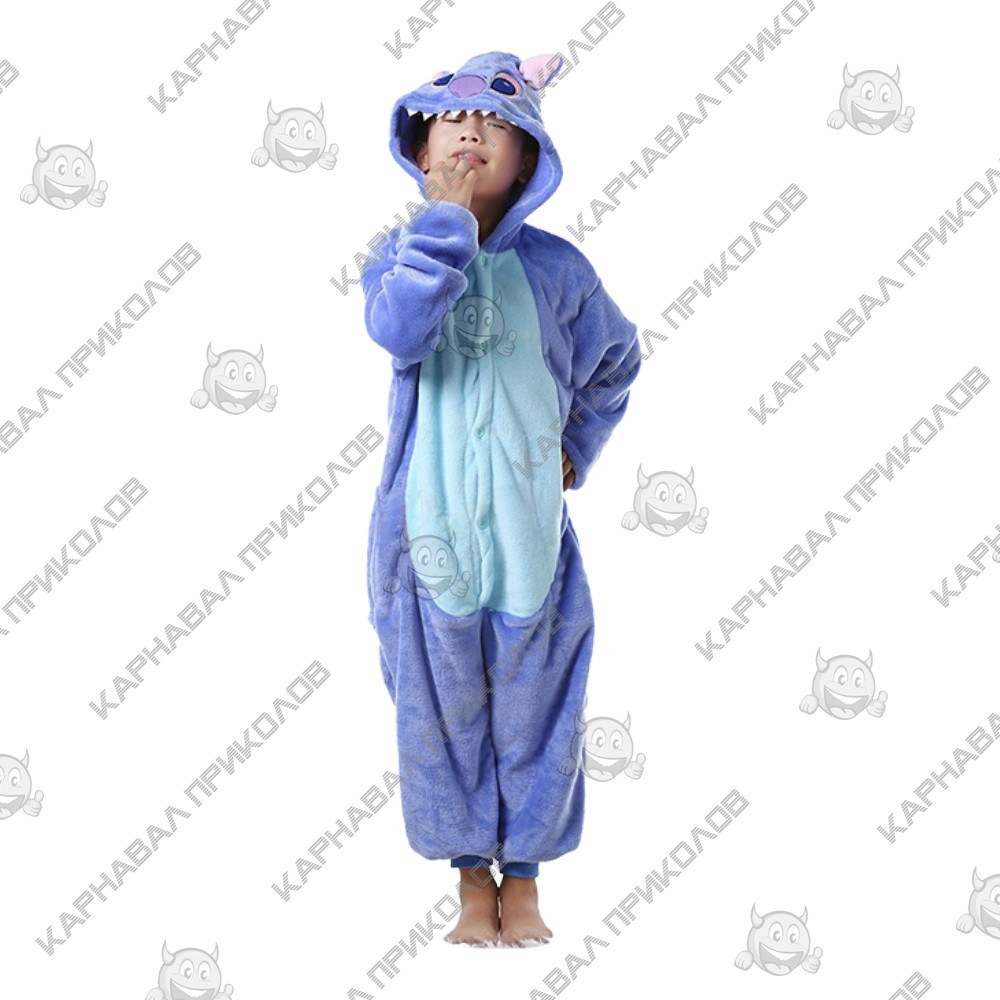 Кигуруми детский Стич (фиолетовый) 100 — костюм, в котором любой обожающий эпатировать публику человек может изображать персонажа Стич из мультфильма, кино или компьютерной игры Лило и Стич. Синий костюм зубастика с голубым пузиком несомненно станет любымимым для Вашего малыша. Сегодня кигуруми носят по всему миру, переодеваясь то в Пикачу, то в Стича, то в Майка Вазовски, Дракона или Хэлло Китти. Люди, которые их носят, называются кигуруминами. Комбинезон кигуруми — это не просто прикольный комбинезон, который может быть летним и зимним, с капюшоном, хвостиком и ушами. Это, прежде всего, удобный и клевый костюм, в котором тепло, легко двигаться и радовать окружающих. Мягкий, приятный на ощупь, выполненный из полиэстера, кигуруми не мнется и подходит как для парней, так и для девушек. Купить кигуруми можно себе самому или подарить друзьям — кигуруми создают для взрослых и детей, начиная с трех лет. Стирать костюм нужно вручную, а после стирки, не выжимая, тщательно просушить. При правильном ухаживании костюм подарит легкость движений и радостные эмоции. Кигуруми отлично подходят для проведения флешмобов, перформансов и концептуальных акций, веселых вечеринок и опен-эйров. Можно купить кигуруми костюм и использовать его во всемозможных целях. Кигуруми создают, опираясь на героев популярных во всем мире шедевров мультипликации, блокбастеры и самых крутых компьютерных игр.