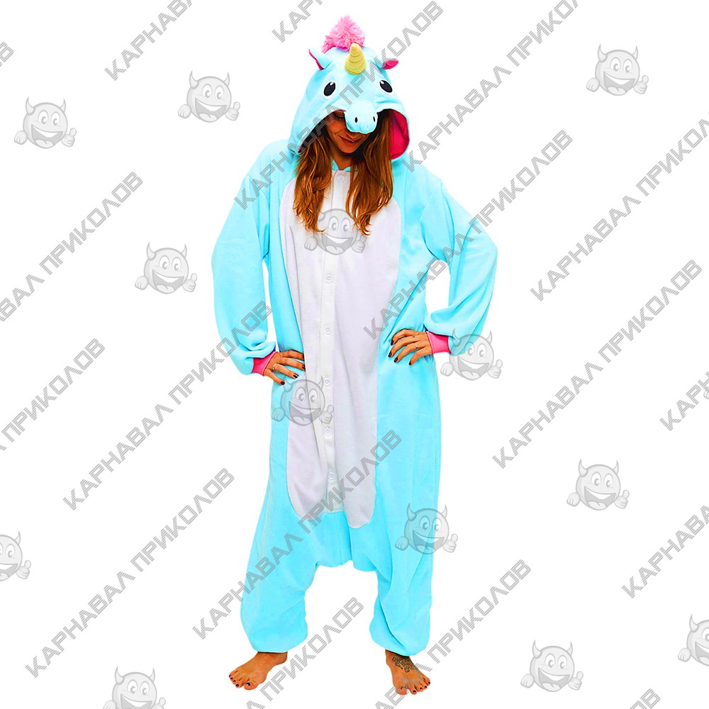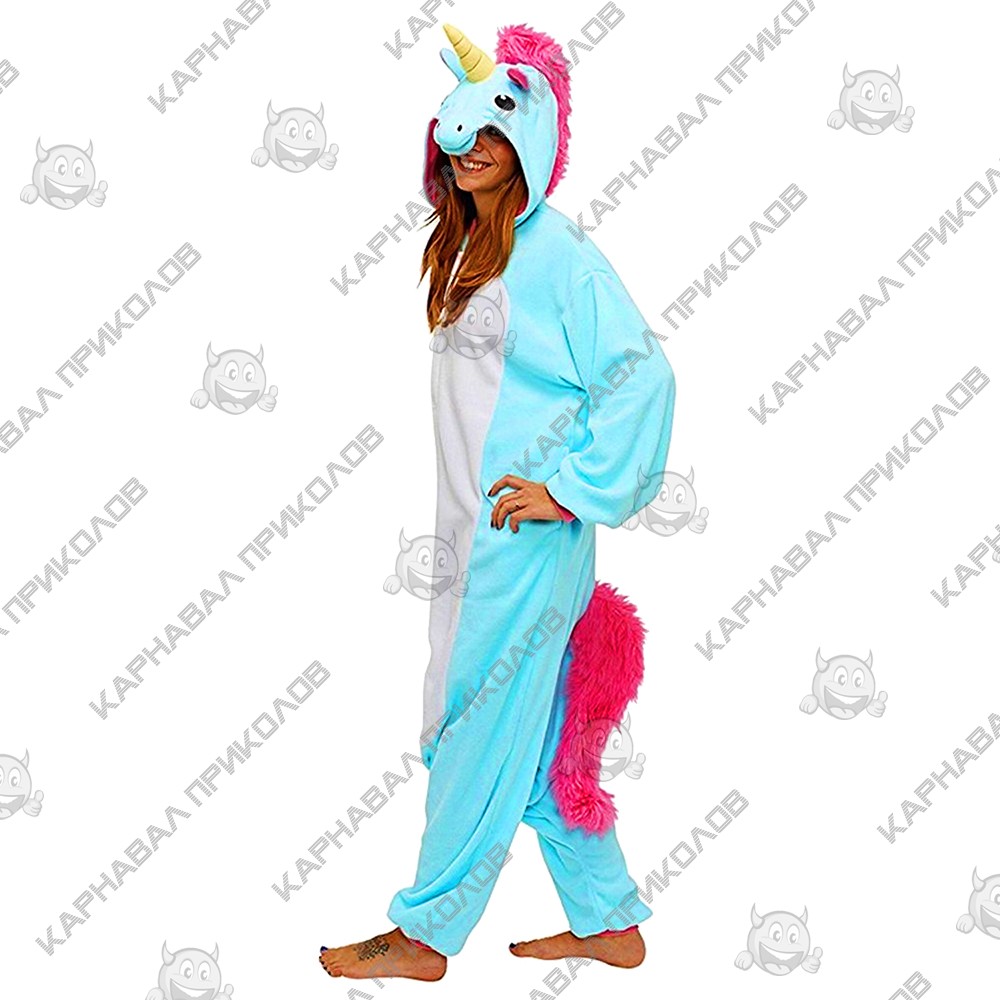 Кигуруми Единорог (голубой) XL — костюм, в котором любой обожающий эпатировать публику человек может изображать какого-нибудь персонажа мультфильма, кино или компьютерных игр. Кигуруми появились в Японии, стране, где сочетают традиционное качество и ультрамодные идеи. Сегодня кигуруми носят по всему миру, переодеваясь то в Пикачу, то в Стича, то в Майка Вазовски, Дракона или Хэлло Китти. Люди, которые их носят, называются кигуруминами. В общем, кигуруми — целая культура, которая уверенно завоевывает мир. А купить костюм кигуруми можно практически в любом городе, даже самом удаленном и малонаселенном. Комбинезон кигуруми — это не просто прикольный комбинезон, который может быть летним и зимним, с капюшоном, хвостиком и ушами. Это, прежде всего, удобный и клевый костюм, в котором тепло, легко двигаться и радовать окружающих. Мягкий, приятный на ощупь, выполненный из полиэстера, кигуруми не мнется и подходит как для парней, так и для девушек. Купить кигуруми можно себе самому или подарить друзьям — кигуруми создают для взрослых и детей, начиная с трех лет. Стирать костюм нужно вручную, а после стирки, не выжимая, тщательно просушить. При правильном ухаживании костюм подарит легкость движений и радостные эмоции. Кигуруми отлично подходят для проведения флешмобов, перформансов и концептуальных акций, веселых вечеринок и опен-эйров. Можно купить кигуруми костюм и использовать его во всемозможных целях. Кигуруми создают, опираясь на популярные во всем мире шедевры мультипликации, блокбастеры и самые крутые компьютерные игры. Любой персонаж игры или герой мультфильма неизменно популярен и любим детьми и взрослыми. Поэтому костюм, отсылающий нас к фантастической или забавной истории, обречен на то, чтобы привлекать внимание, поднимать настроение и заряжать позитивной энергией всех вокруг!