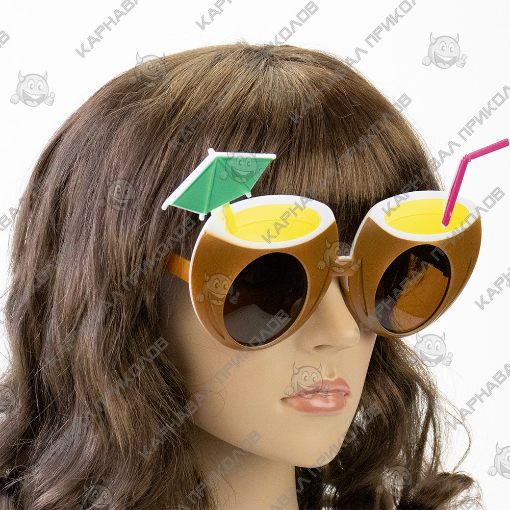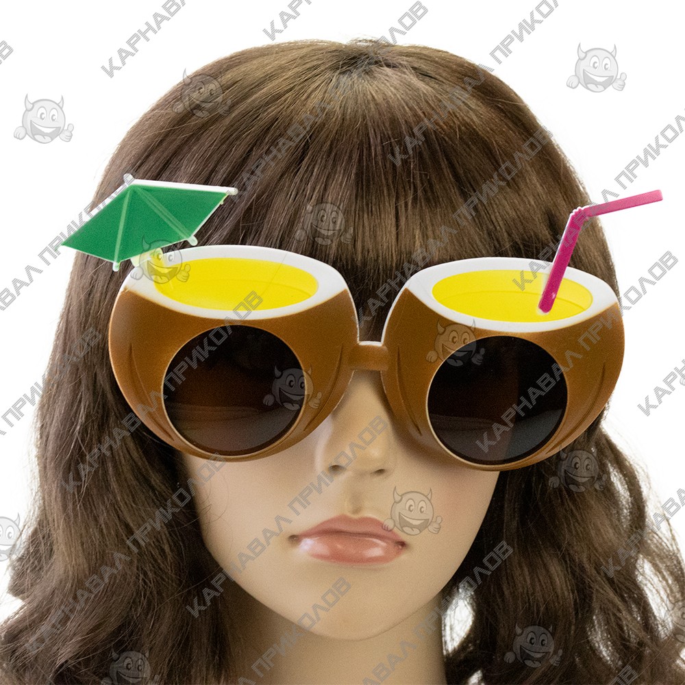 Коктейль (коричневые) – это очки для пляжной вечеринки, корпоратива, фотосессии или дня рождения. Очки для вечеринки Коктейль зеленой оправы в форме кокоса. Второе распространенное название очков: Очки гавайский тропический коктейль. Не являются солнцезащитными. Нет UF-фильтров. Дополнить образ этих очков поможет гавайская атрибутика: орхидеи леи, гавайские костюмы, которые вы можете купить оптом в нашем интернет-магазине. Смешные карнавальные очки коктейль порадуют друзей и привлекут внимание к Вашему лицу.