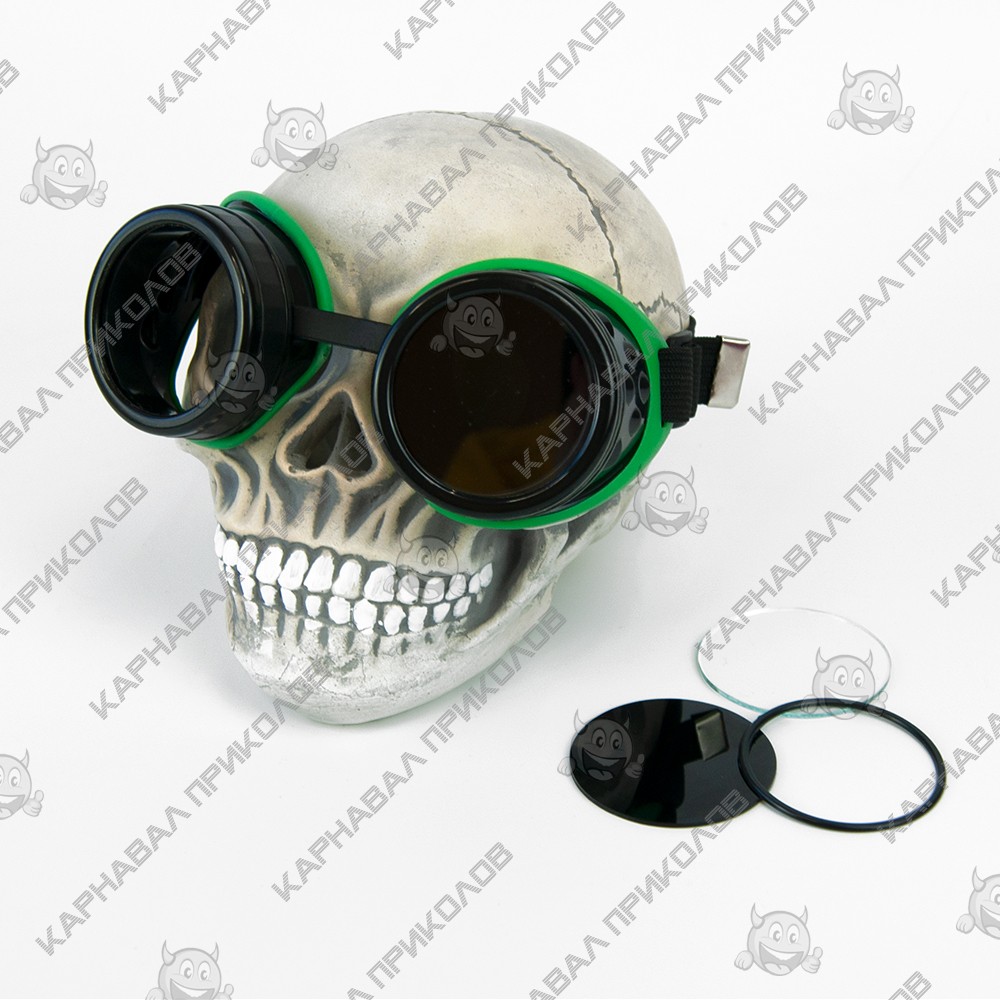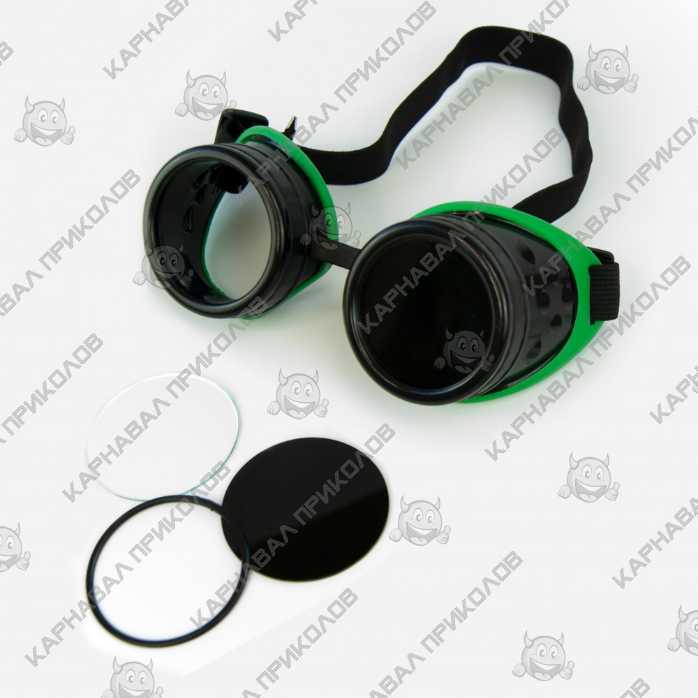 Очки Стимпанк Гогглы Авиаторы (черные с зеленым) XP303